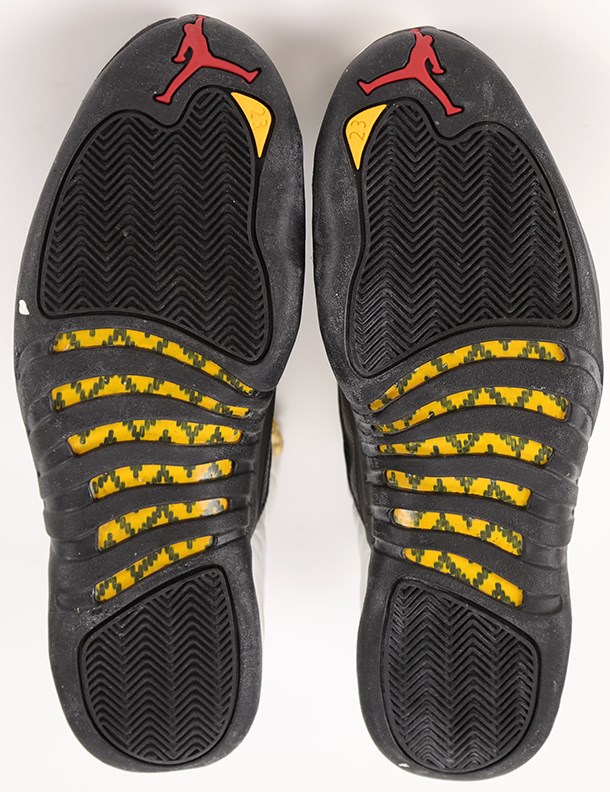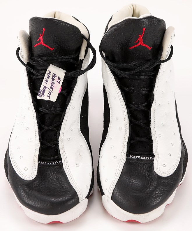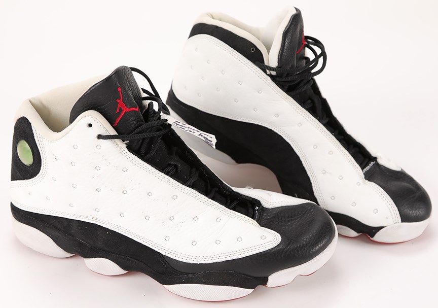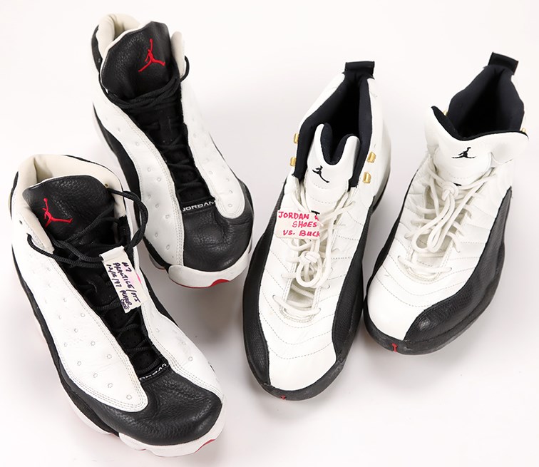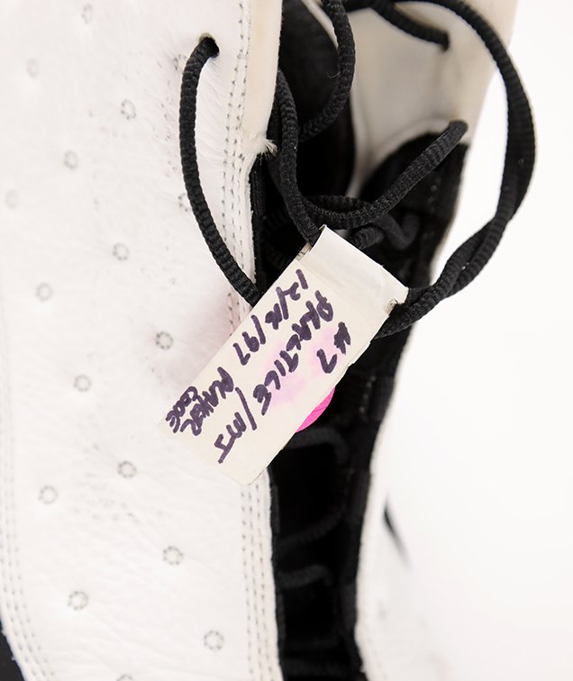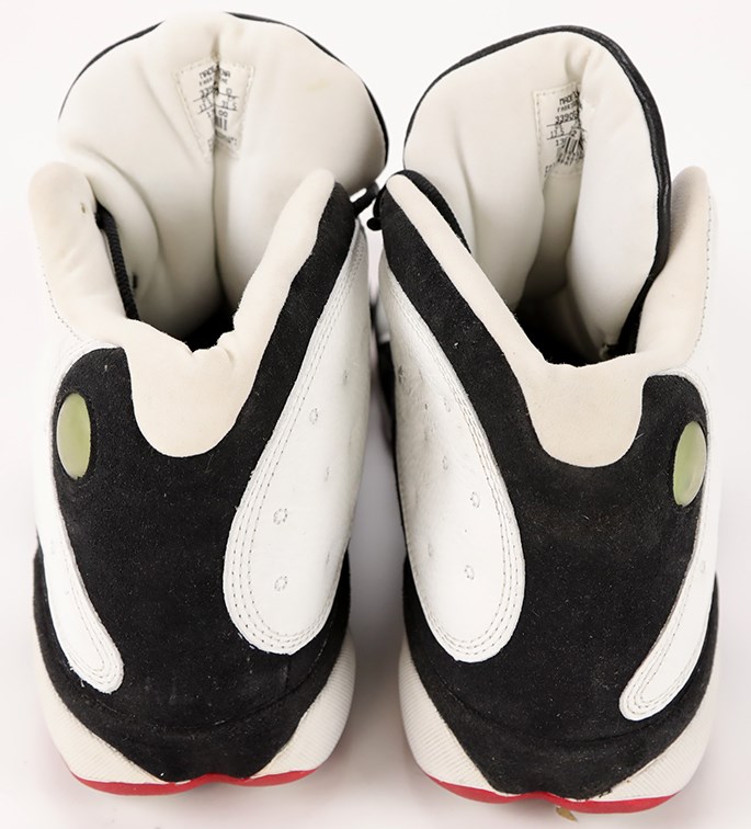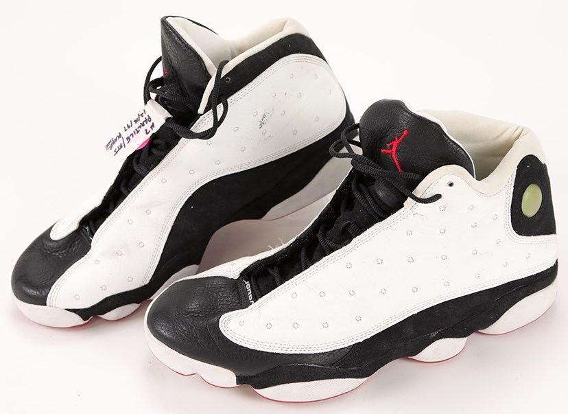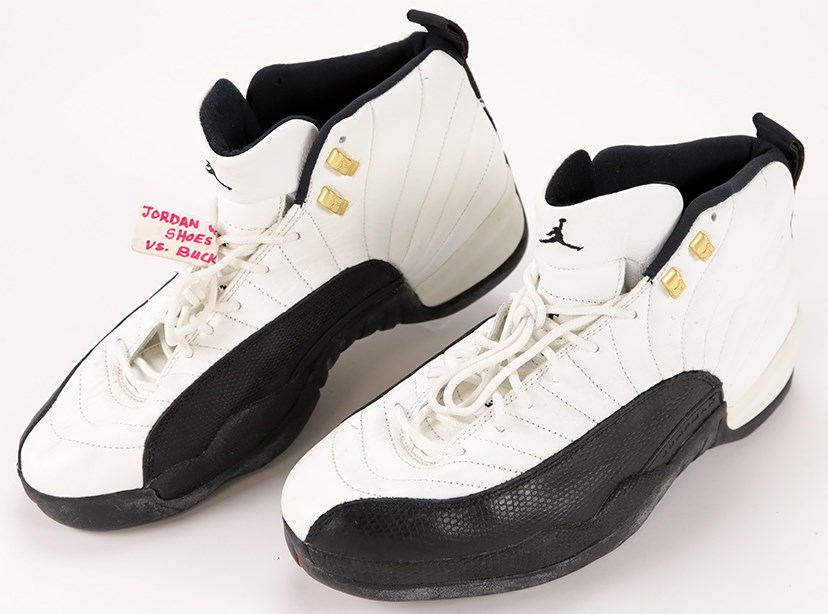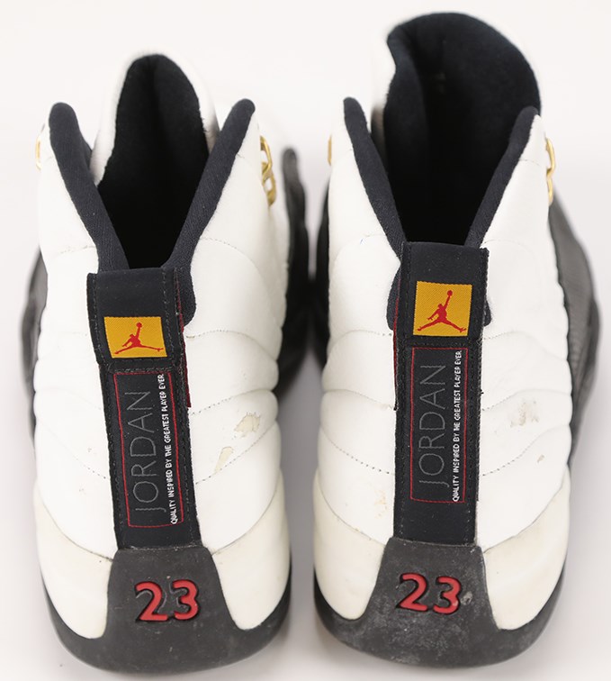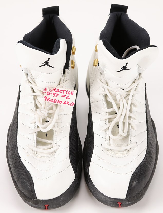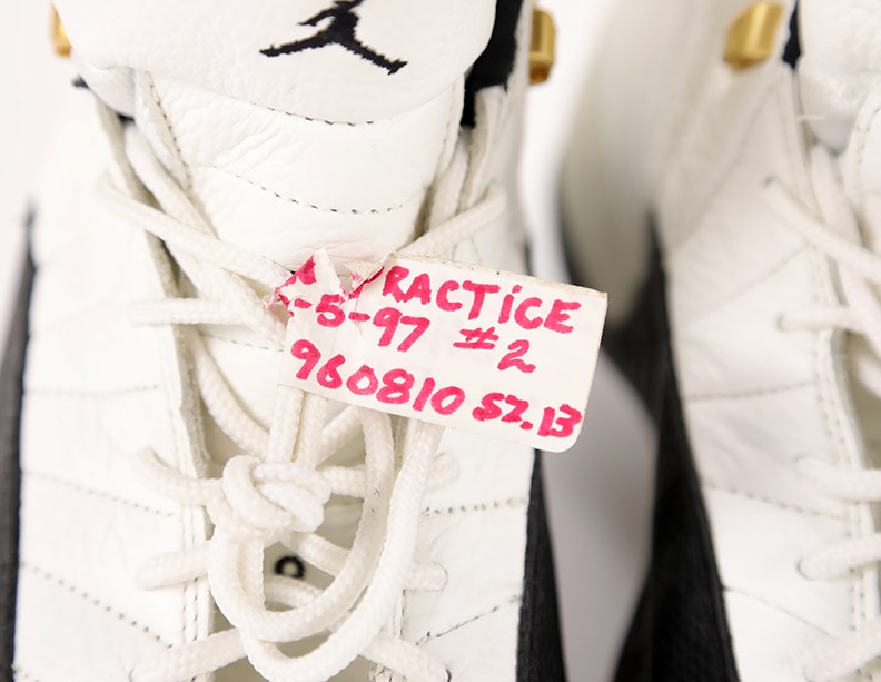 Attributed to 12/5/97 and 12/6/97, these white and black Nike Jordan sneakers are fresh to market, show appropriate use and were worn by the best.
