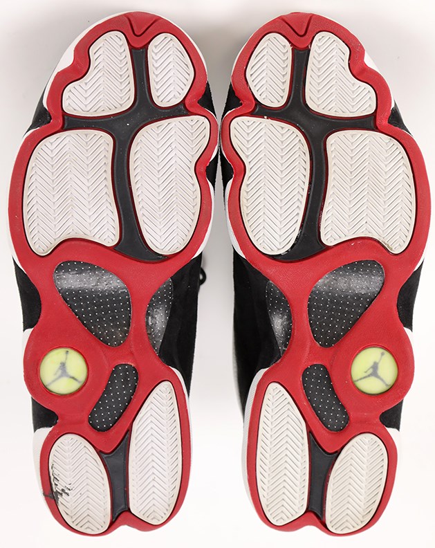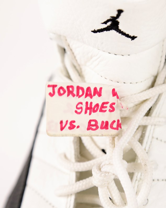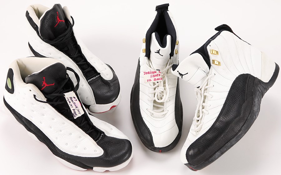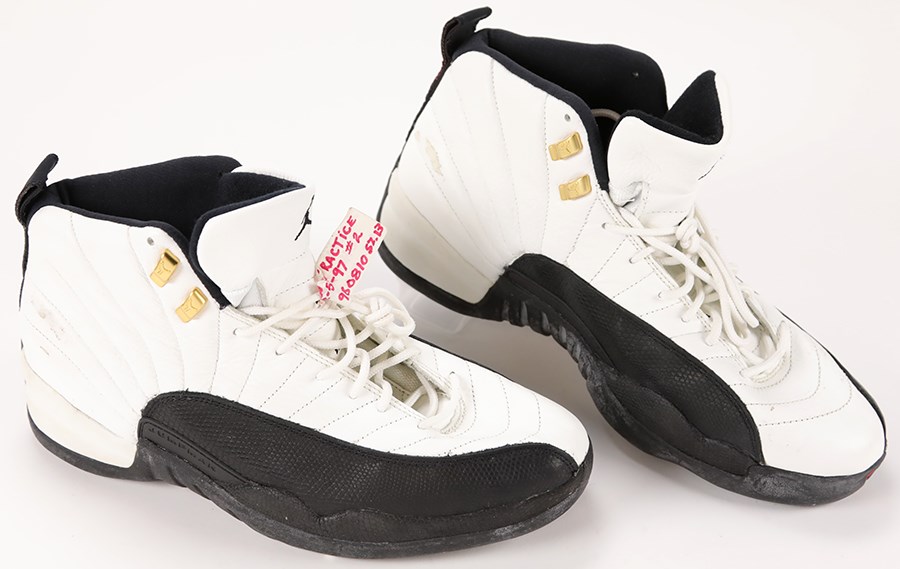 Remarkable pair of 1996-1997 Michael Jordan Chicago Bulls practice worn sneakers source from the same consignor who consigned numerous Bulls game worn and photo-matched items to our last few auctions including the shorts that Steve Kerr wore to hit the game winning shot in the 1997 NBA Finals.