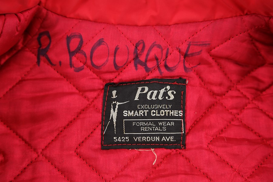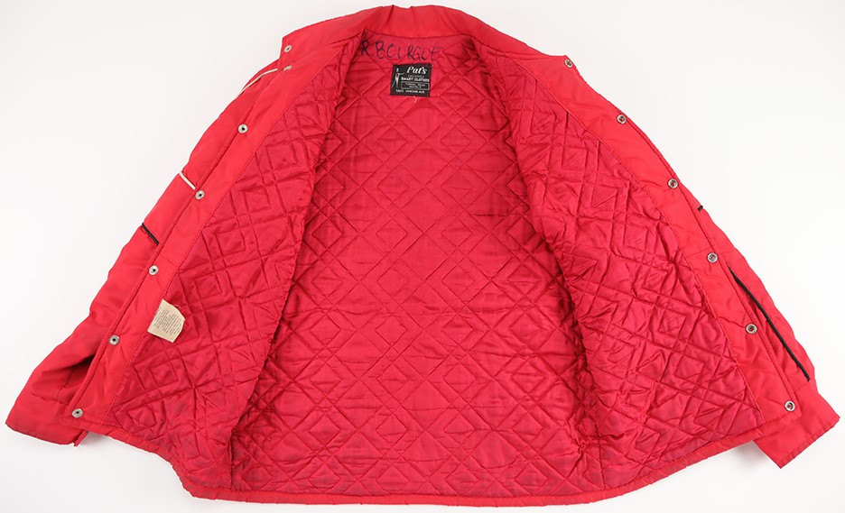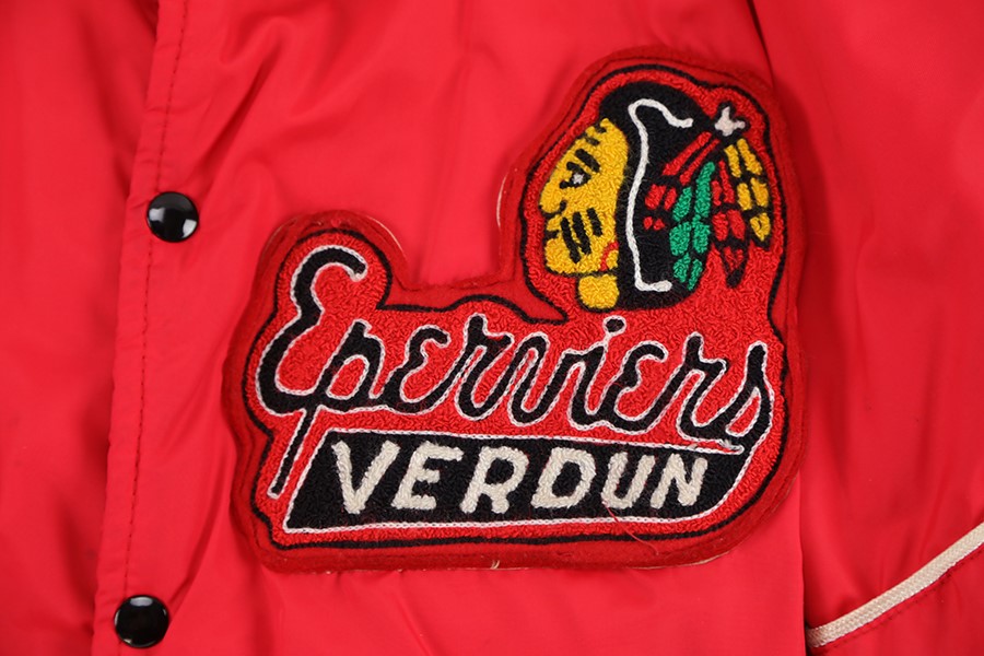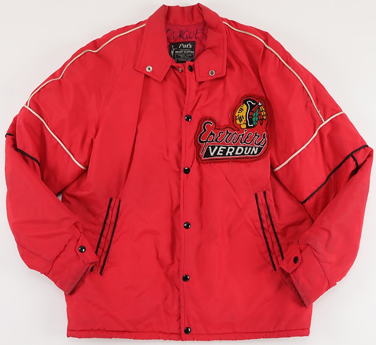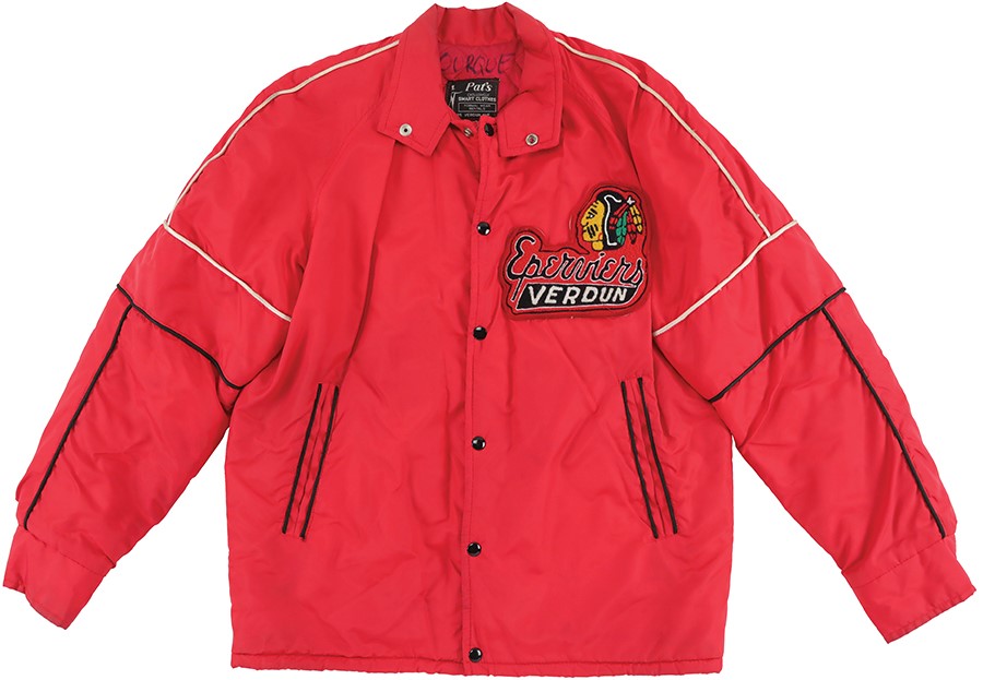 Before he became the gold standard for NHL offensive defensemen during his 21-year career spanning from 1979-2001, Ray Bourque prepared for the big time by playing 135 games for the Verdun Blackhawks of the Quebec Major Junior Hockey League. This red snap-front jacket shows great use by the Hall of Famer, with frayed cloth patch (in French) on left breast, tag from Pat's of Verdun inside collar, and name written in black Sharpie inside collar. Historic piece from a hockey legend.