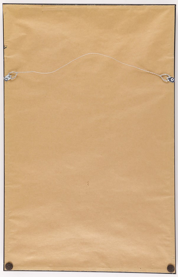 Scarce broadside heralding an Eastern Amateur Hockey League game between the Hershey B'ars and Baltimore Orioles at the Hershey Park Ice Palace on March 14, 1934. The sign features an illustration of a generic player and lets patrons know that there will be "Free Skating After Game." The Hershey B'ars, which later changed its name to the Hershey Bears in 1936, was sponsored by Milton Hershey, who later built the Hershey Sports Arena to accommodate a growing fan base. The thin cardboard sign (13.25x21.25") has been affixed to a black mount and is in Poor condition, with several large areas of paper loss, creasing, and staining. Framed to total dimensions of 15x23".