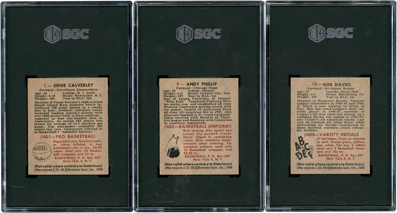 Lot # 483: 1948 Bowman Basketball SGC NM-MT Card Collection (9) w/#1 Calverley