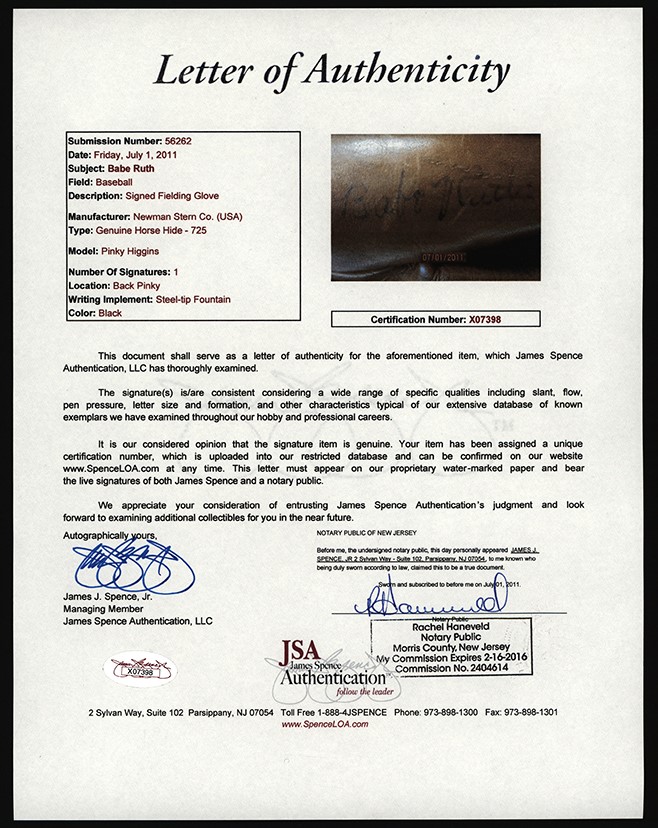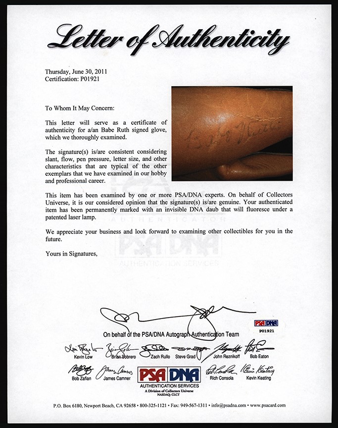 Lot # 776: Babe Ruth Autographed Glove w/Photo Documentation of Signing (PSA & JSA)