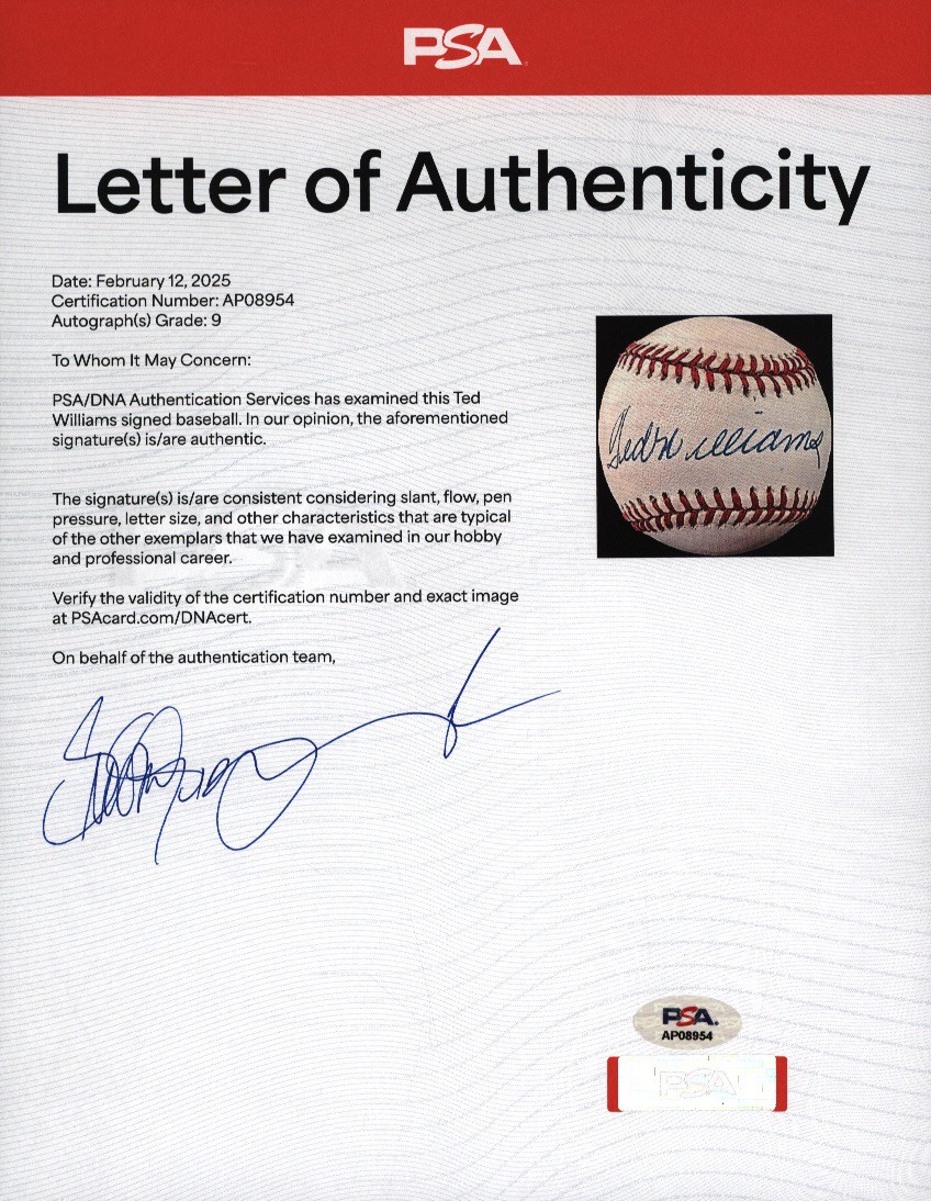 Lot # 1041: Ted Williams Signed Baseball for PSA