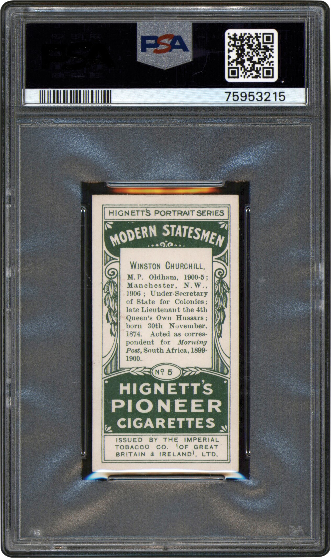 Lot # 2136: ** MOVED FROM 2025 WINTER CLASSIC ** 1906 Hignett Bros & Co Modern Statesman Winston Churchill PSA EX-MT 6