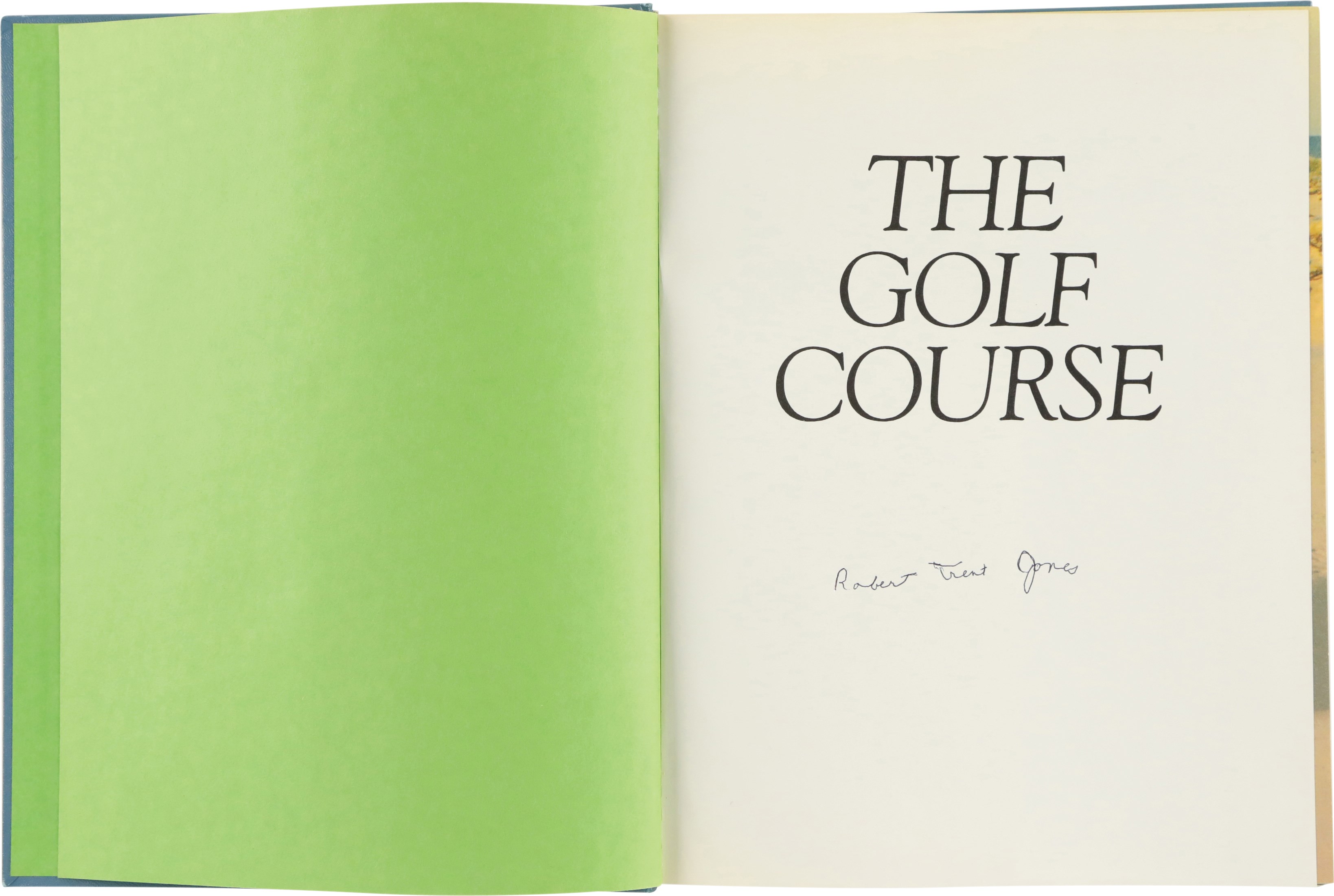 Presented is The Golf Course Book, signed by famous golf course architect Robert Trent Jones, a designer and re-designer of over 500 U.S. golf courses. Jones was born in Scotland and moved as a boy to the United States. He studied golf course design at Cornell University. He sometimes worked creatively with famed golfer Bobby Jones, no relation, on golf course design and as a result he began to add his middle name to show what he called himself to distinguish himself from Bobby Jones. When Robert Trent Jones worked with Bobby Jones on the redesign of the 11th and 16th holes at Augusta National Golf Course, the former's name became very well-known. Robert Trent Jones received the prestigious Old Tom Morris Award, and he is an inductee into the World Golf Hall of Fame.