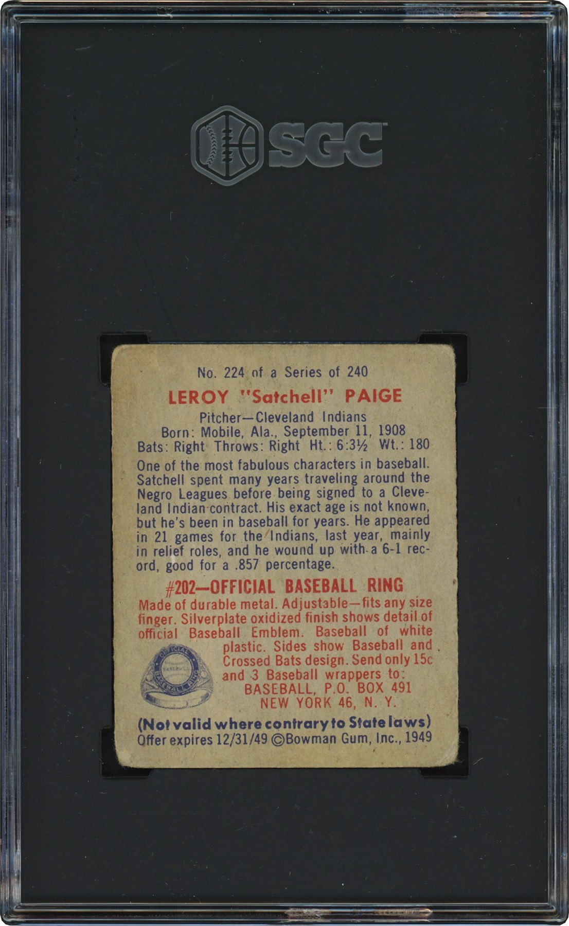 Lot # 45: 1949 Bowman Baseball #224 Satchel Paige SGC FR 1.5
