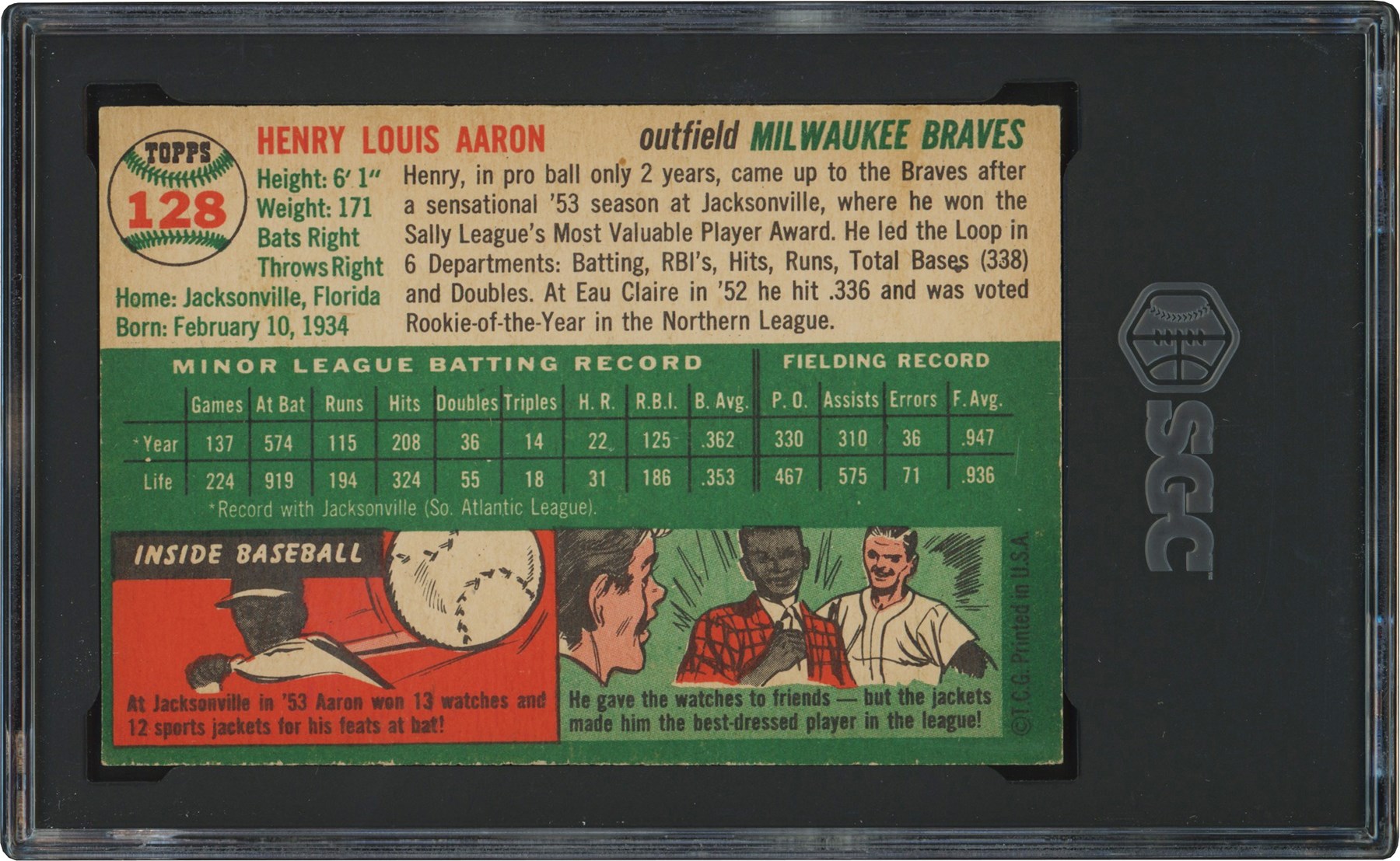 Lot # 57: 1954 Topps Baseball #128 Hank Aaron Rookie SGC Authentic