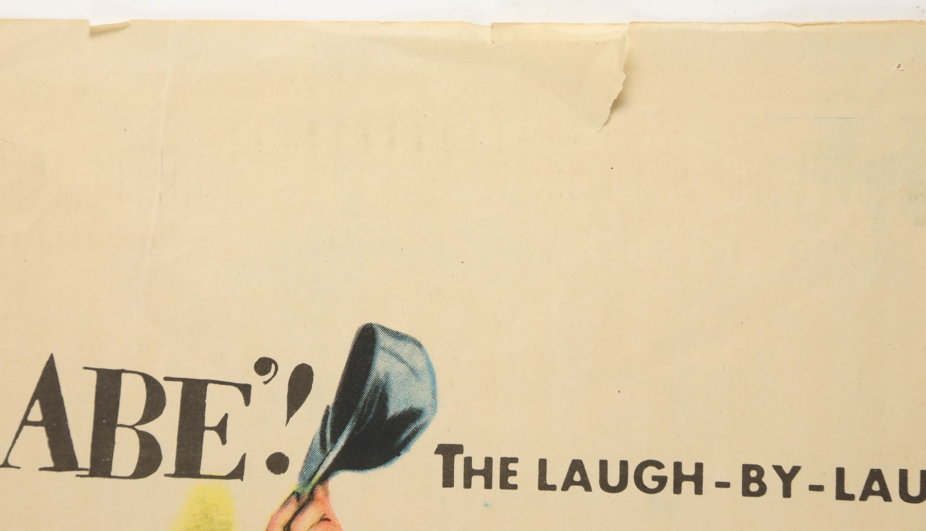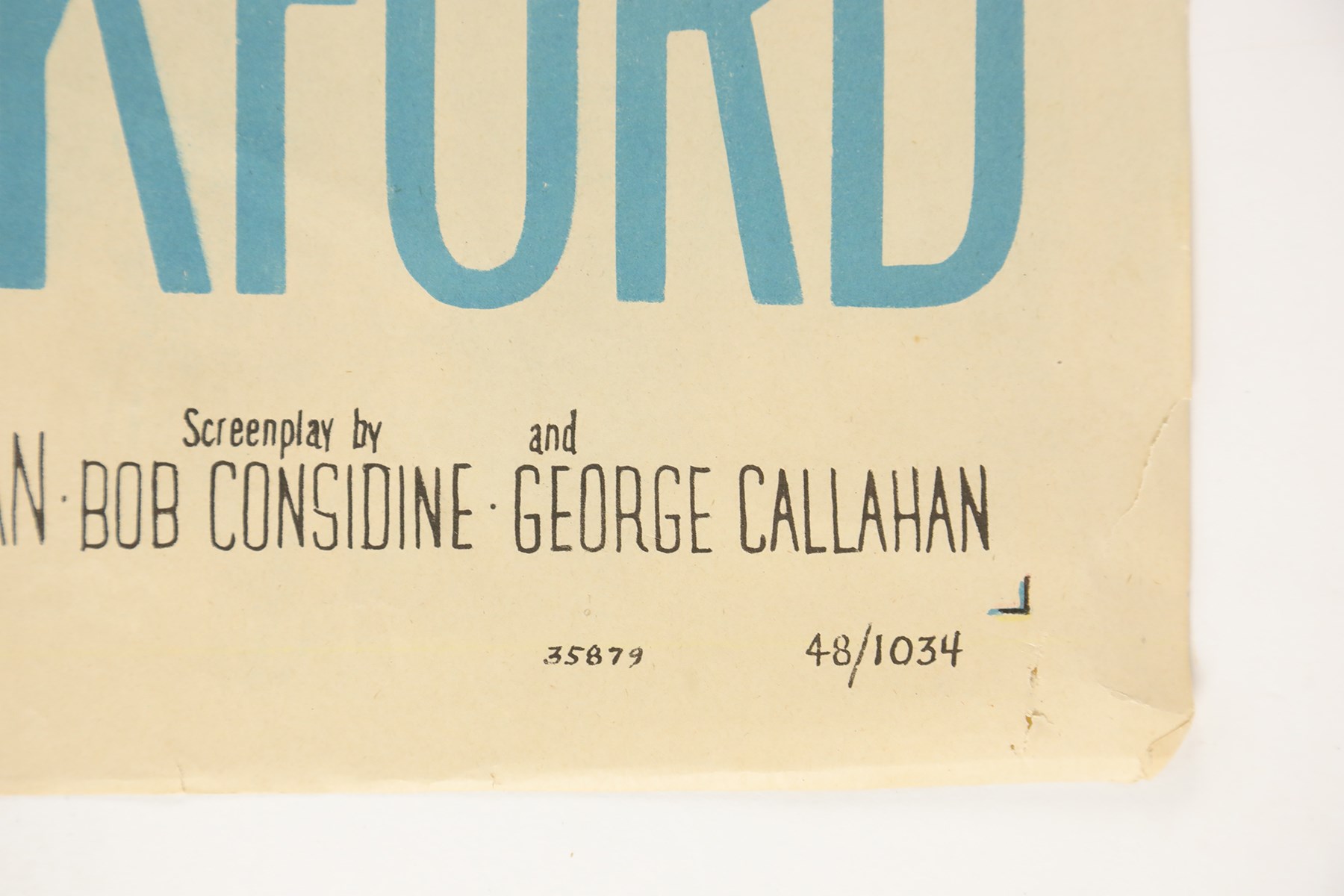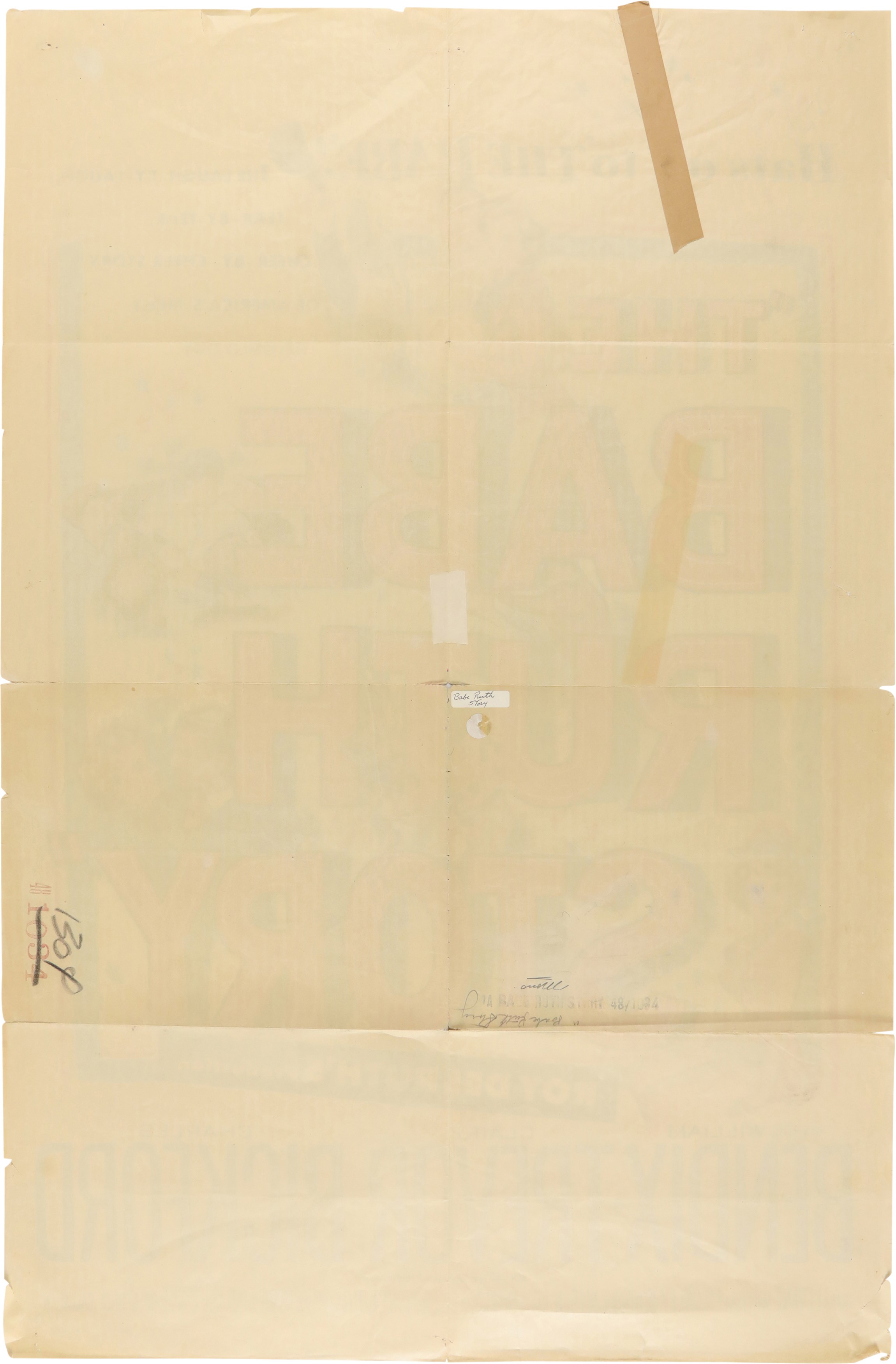 Displayed is a pair of baseball-themed, one sheet movie posters (from the original releases) concerning biopics of Babe Ruth and Dizzy Dean. 1) The 1948 movie poster for The Babe Ruth Story measures 27x40.75". The film was directed and produced by Roy Del Ruth and distributed by Allied Artists, with Allied Artists sometimes also listed as a producer. The film starred William Bendix as Babe Ruth, Claire Trevor as Claire Merritt Hodgson, Ruth's wife, and Charles Bickford as Brother Matthias, the Babe's mentor at the St. Mary's Industrial School for Boys, in Baltimore. The poster has images of Ruth (Bendix) and Claire Merritt Hodgson (Claire Trevor), and reads, in part, "THE BABE RUTH STORY/Hats off to THE BABE! The laugh-by-laugh, tear-by-tear, cheer-by-cheer story of America's Most beloved Guy." The picture follows Ruth from his youth at St. Mary's Industrial School for Boys through his entry into pro baseball, and his time with the Boston Red Sox and the New York Yankees, and for a half season at the end of his career, his time with the Boston Braves. The movie received mostly good reviews upon its release, but in recent years modern reviewers have been critical of the film, contending that it was unrealistic and too sentimental. Ruth was ill when the film was being shot, and the great Bambino passed away only weeks after the movie's release in '48.