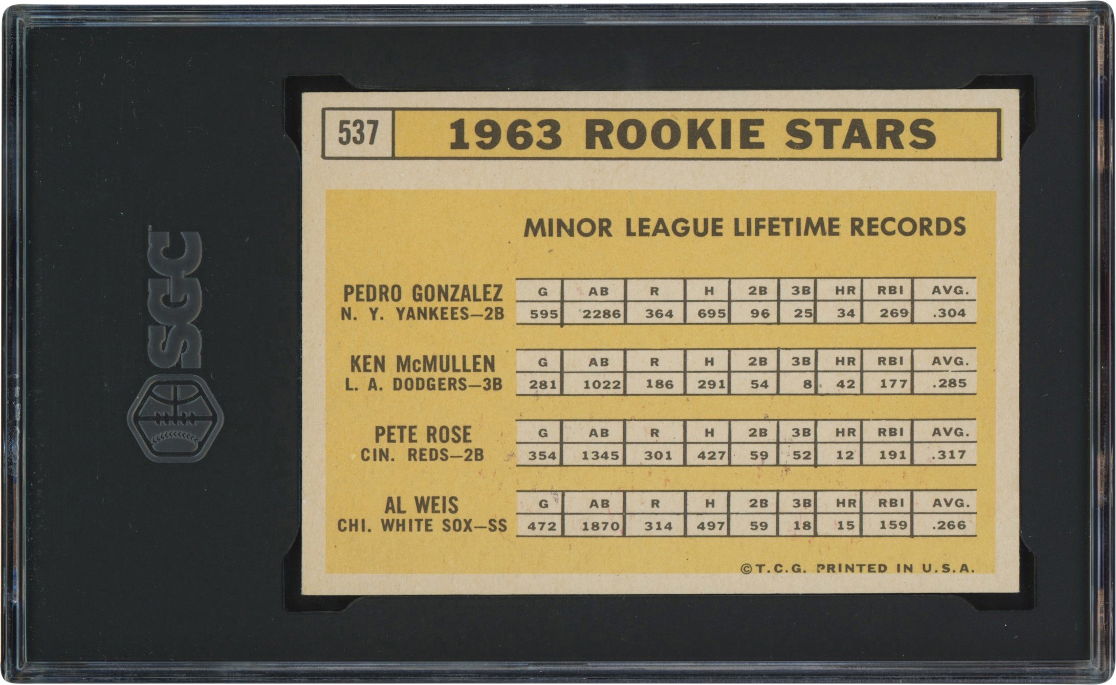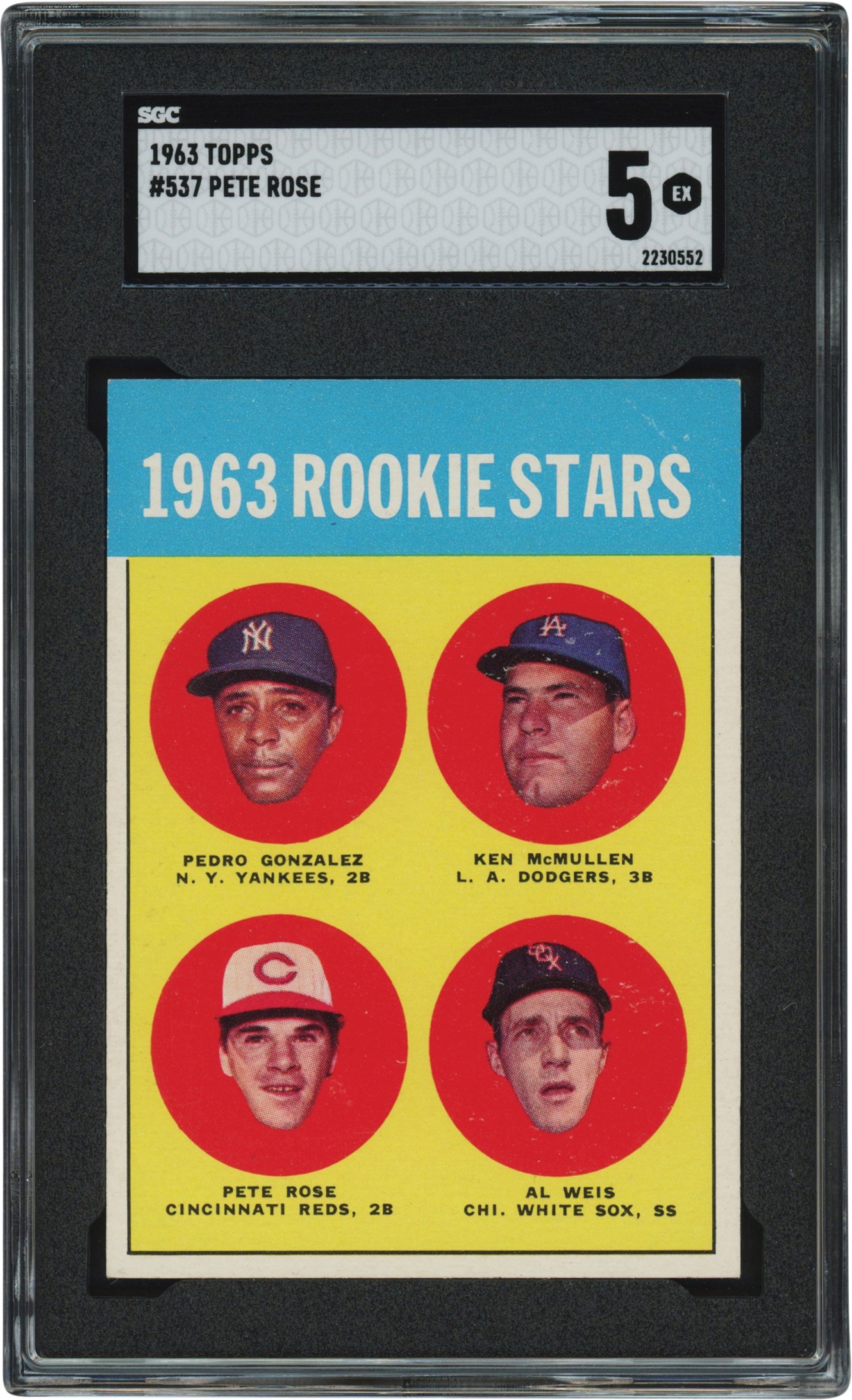 Lot # 78: 1963 Topps Baseball #537 Pete Rose Rookie SGC EX 5