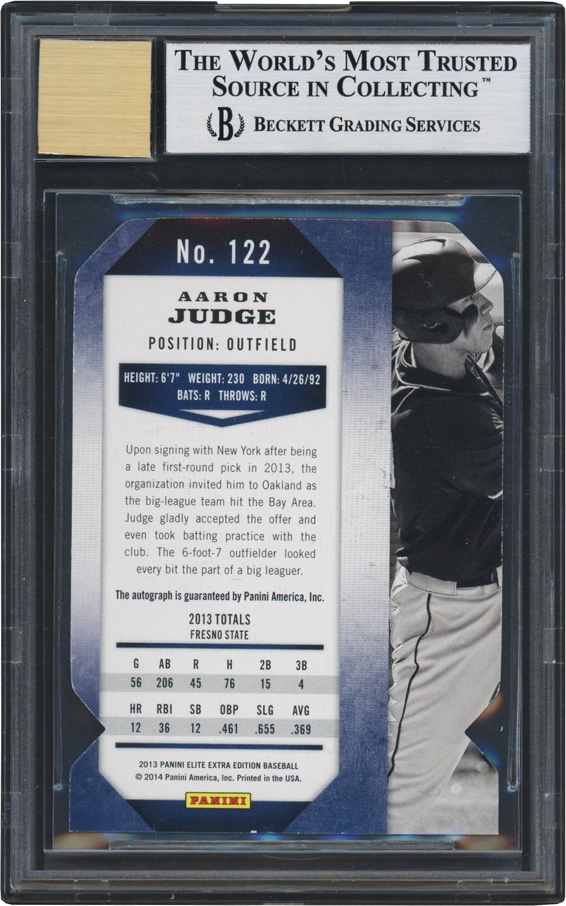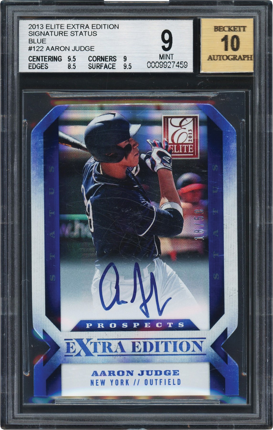 Lot # 101: 2013 Panini Elite Extra Edition #122 Aaron Judge Signature Status Blue #18/50 BGS MINT 9 - Auto 10