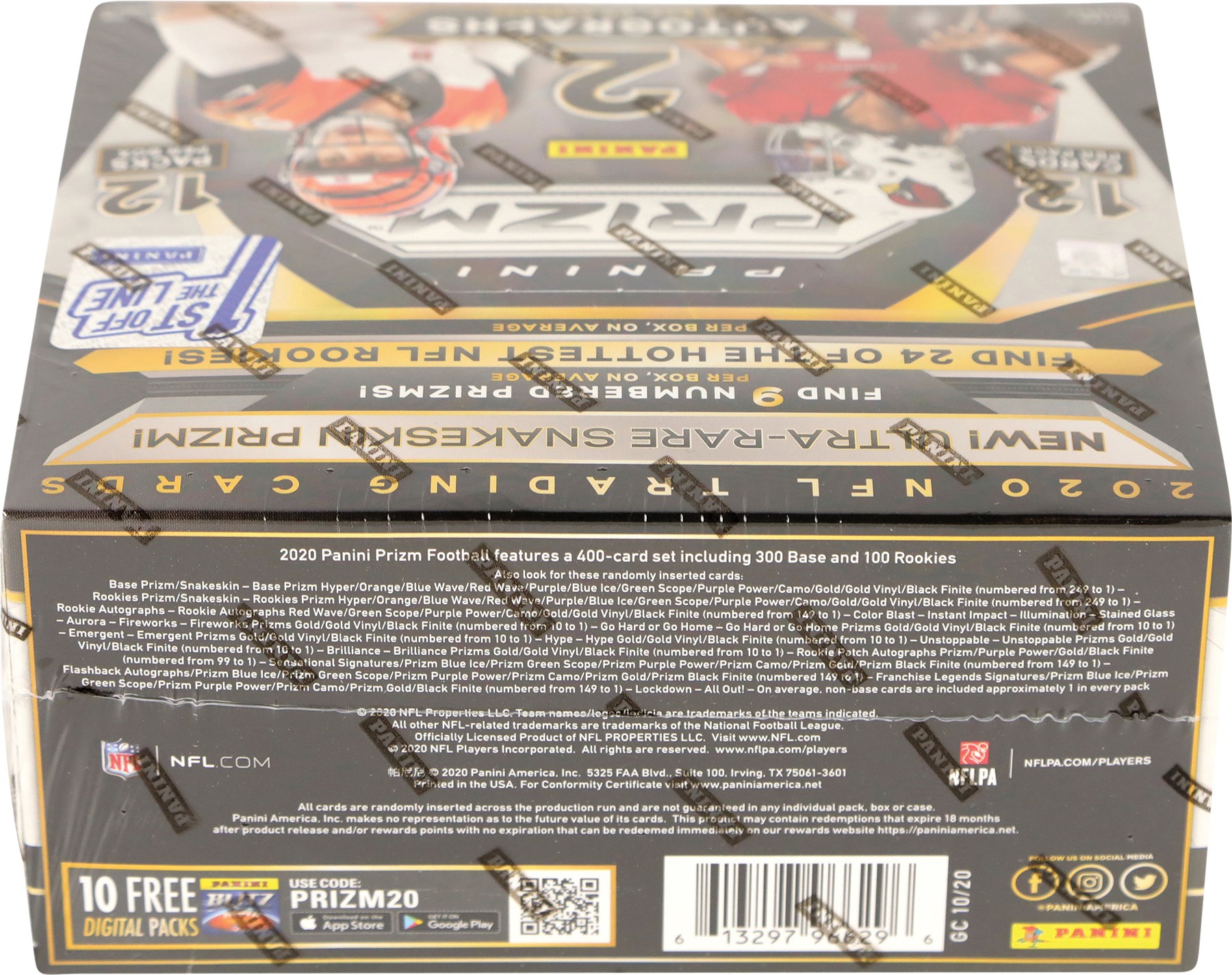 Lot # 296: 2020 Panini Prizm Football Factory Sealed First Off The Line (FOTL) Hobby Box (12 Packs)