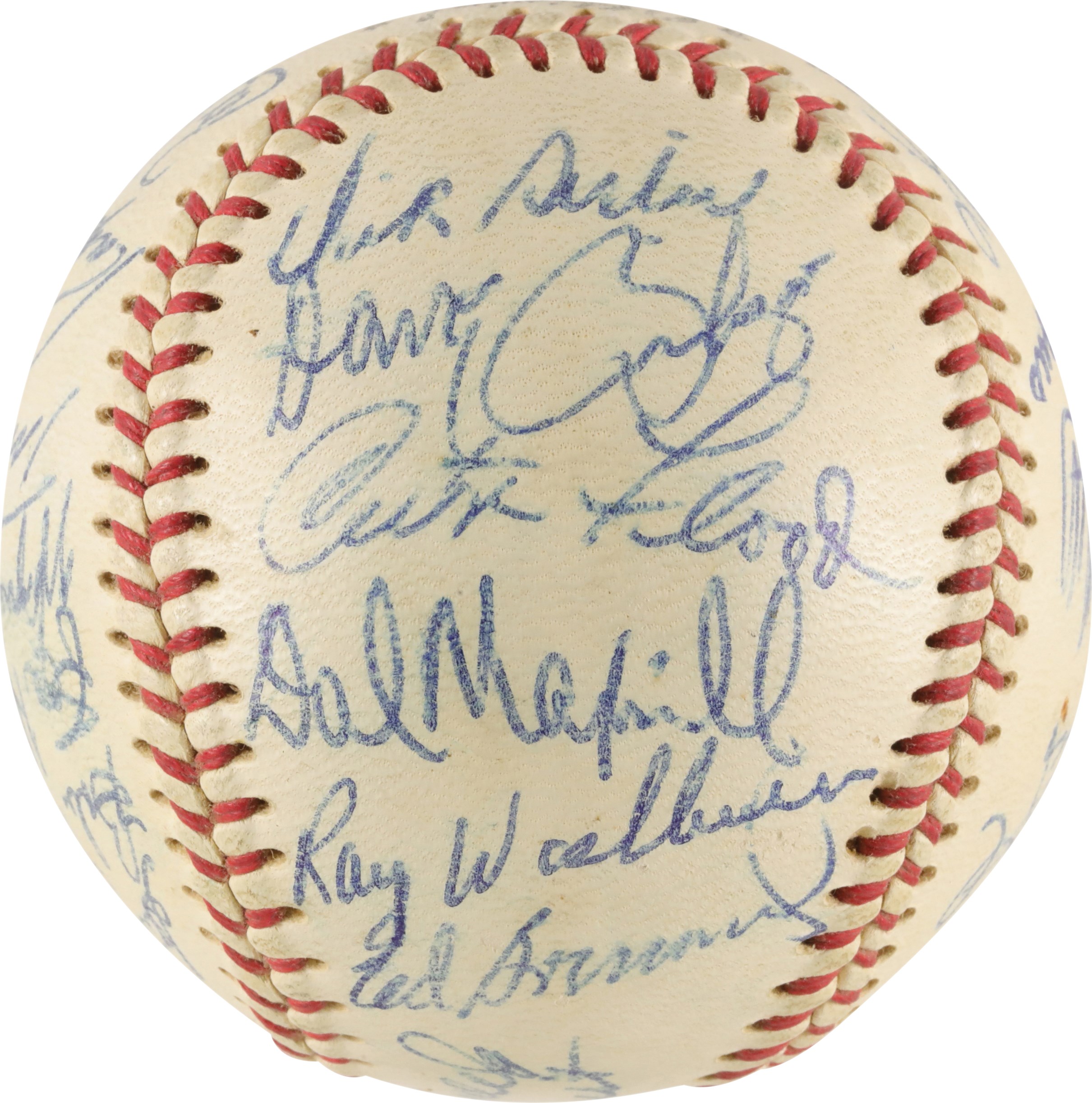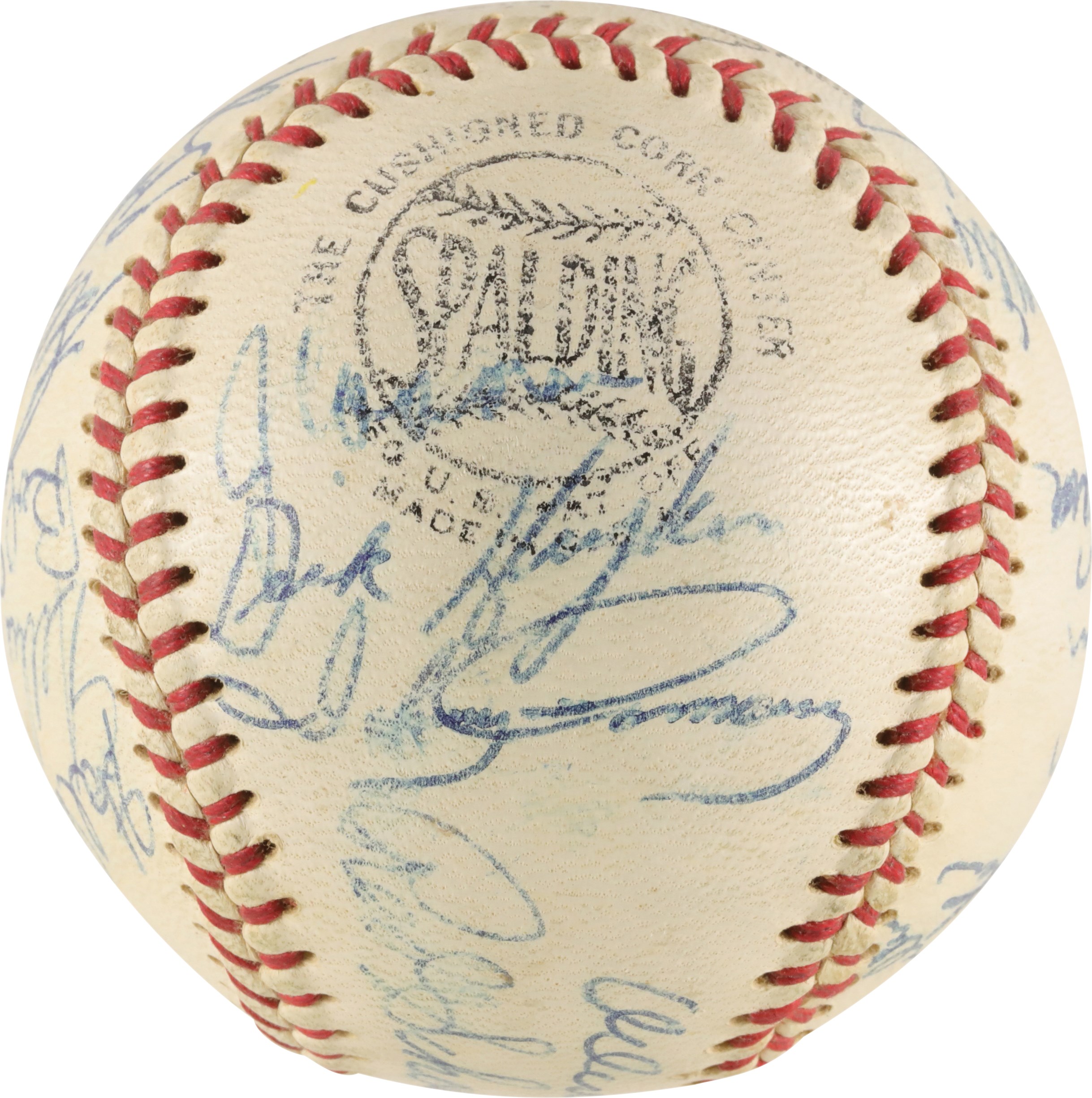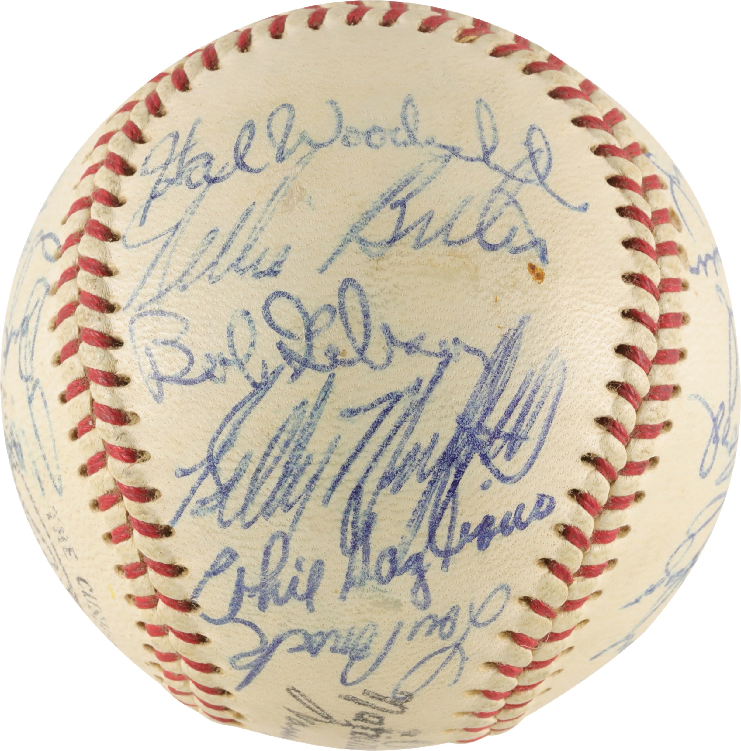 Displayed is a 1967 St. Louis Cardinals World Champions team-signed baseball with 24 signatures, including five Hall of Famers. The '67 Cardinals won the NL pennant with a record of 101-60 and then defeated the Boston Red Sox in the '67 World Series in seven games.