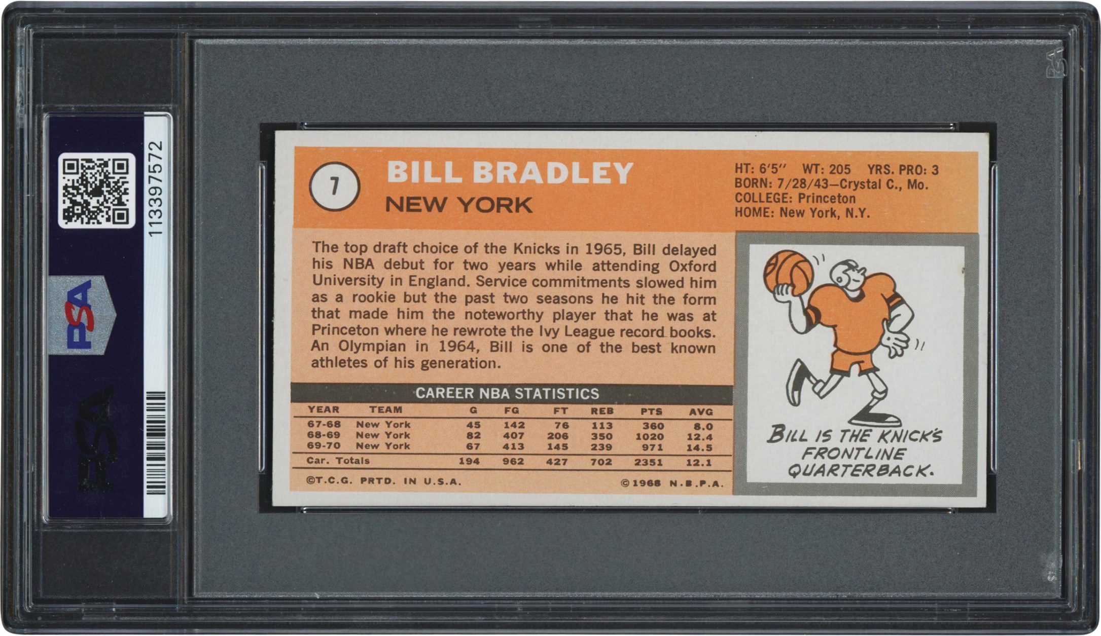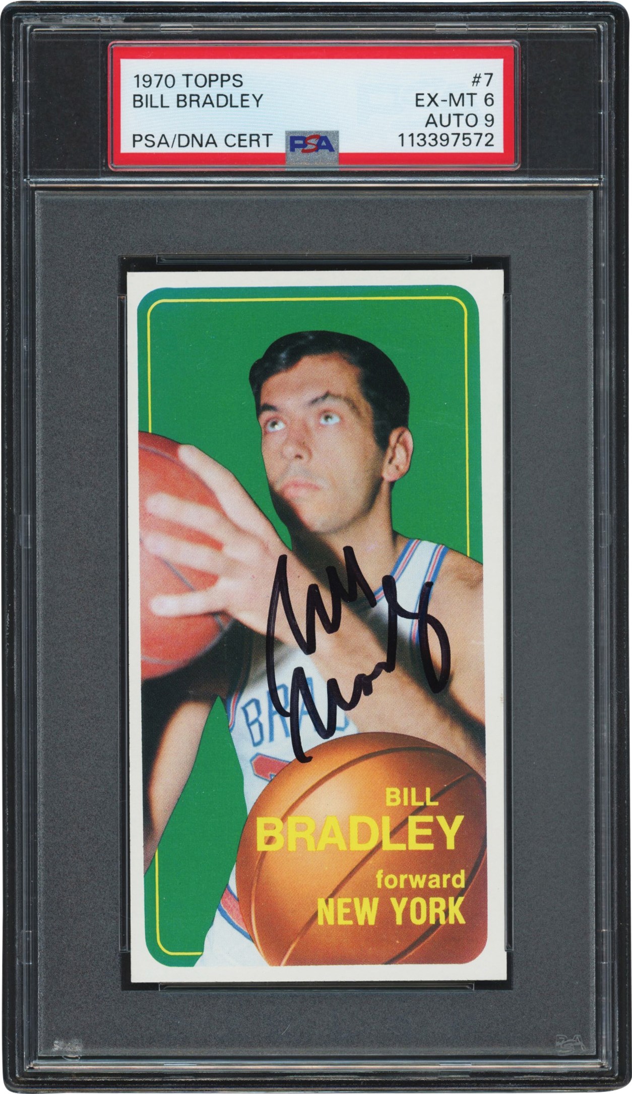 Lot # 193: 1970 Topps Basketball #7 Bill Bradley Signed PSA EX-MT 6 Auto 9 (Pop 1 of 1 Highest Graded)