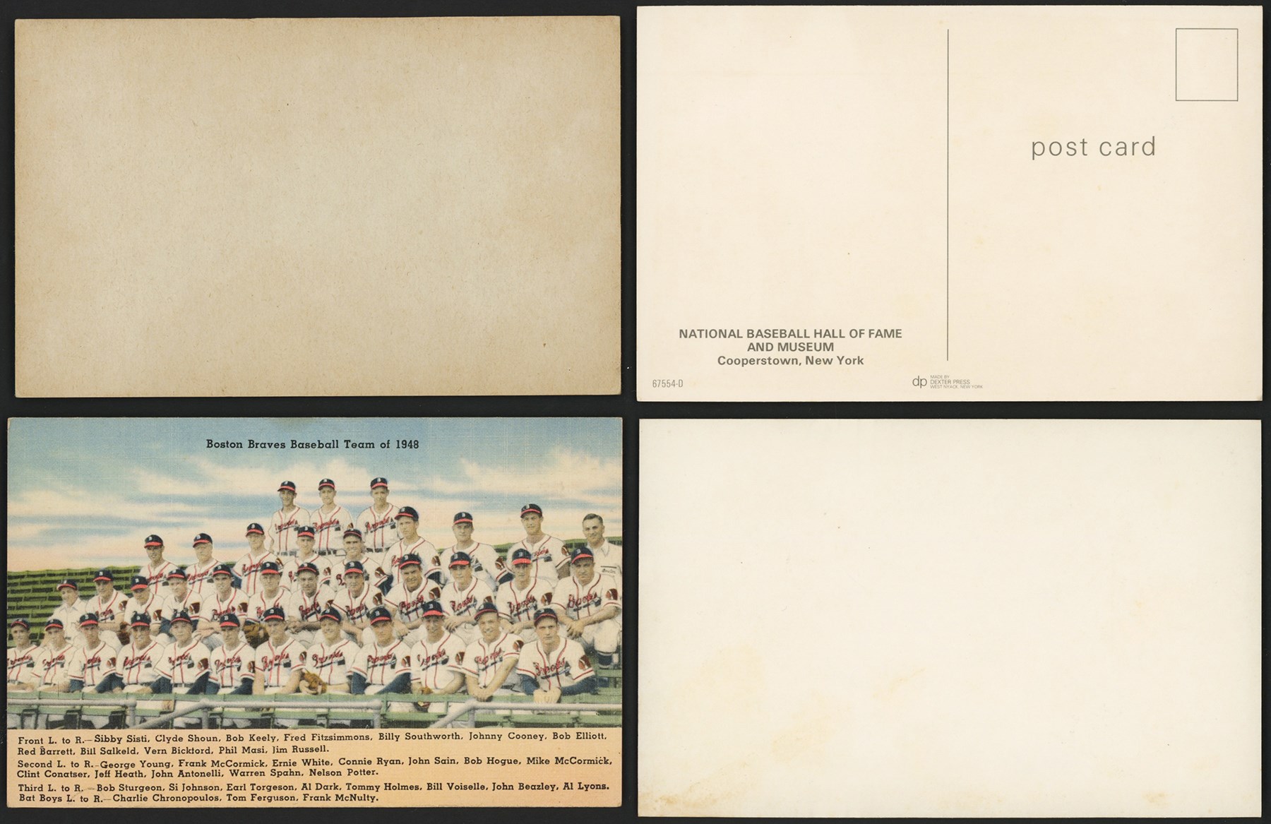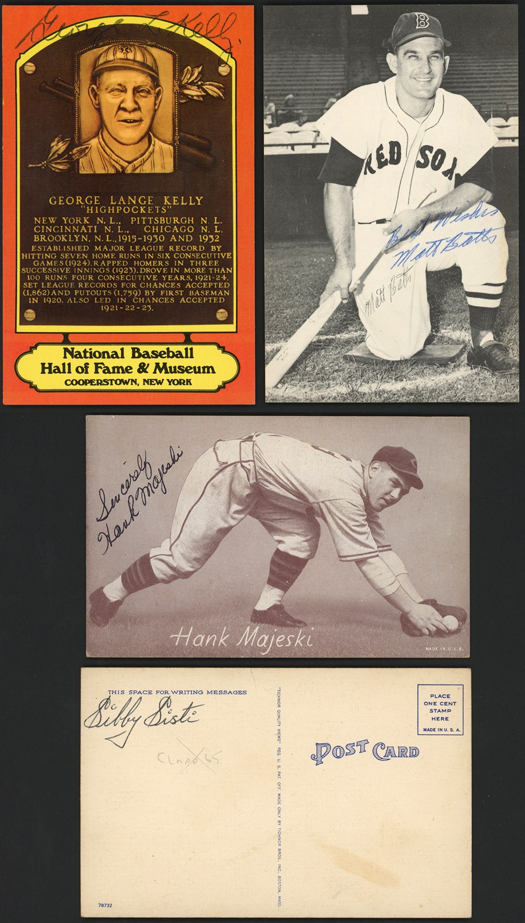 Miscellaneous cards (5): George Kelly (Dexter Press Hall of Fame postcard), Luke Appling (1977 Baseball's Great Hall of Fame Exhibits), Earl Averill (photo card), Matt Bates (photo card), and Sibby Sisti (on the reverse of a 1948 Boston Braves team postcard).