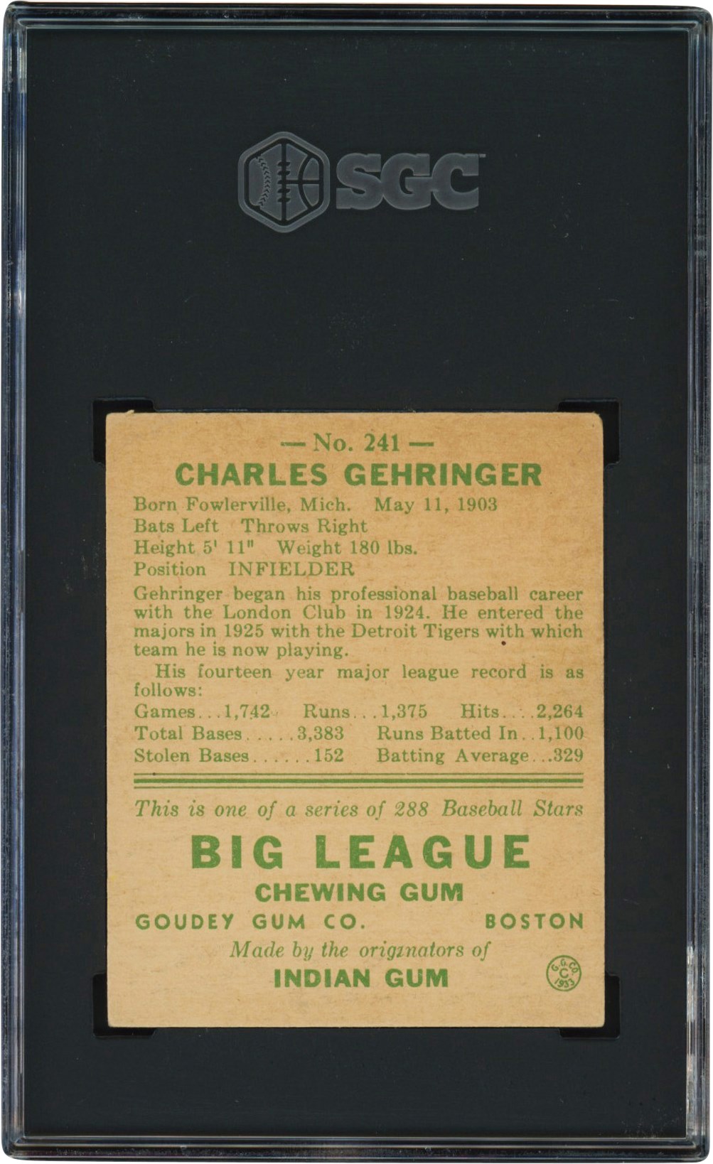 Lot # 29: 1938 Goudey Heads Up #241 Charles Gehringer SGC VG-EX 4