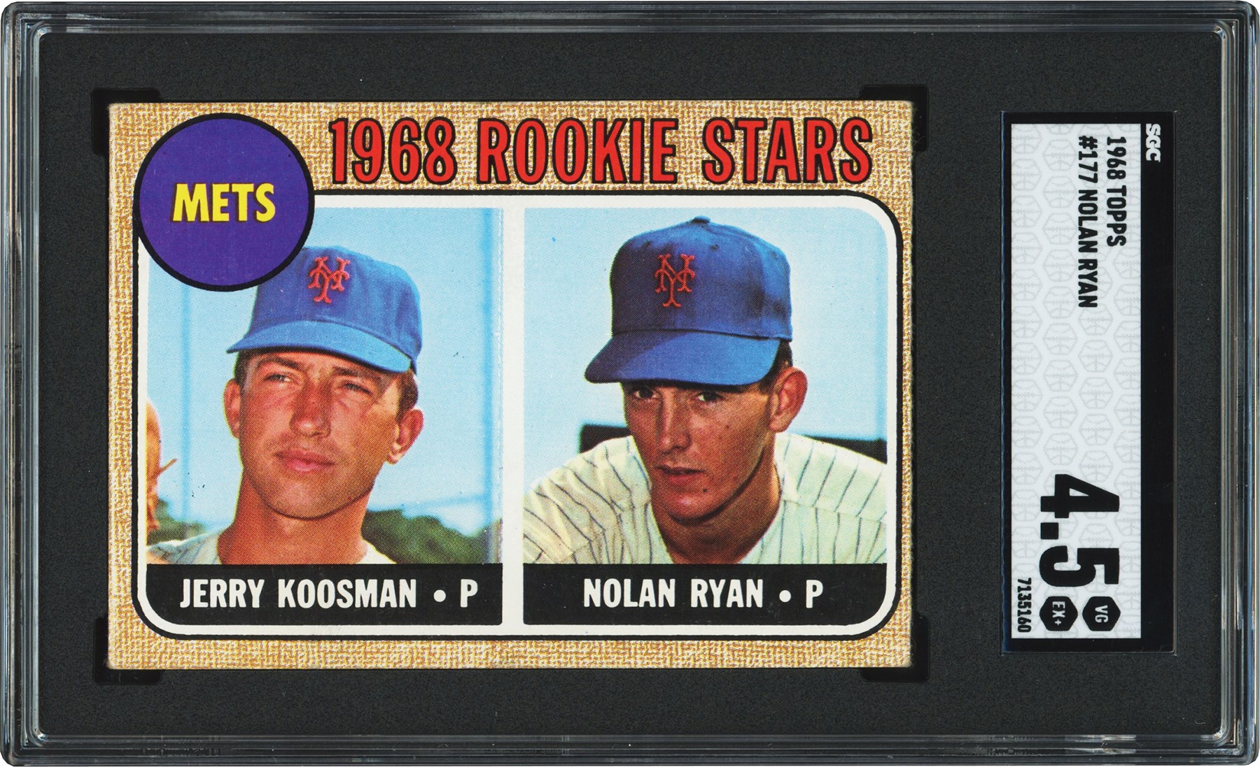 Lot # 83: 1968 Topps Baseball #177 Nolan Ryan Rookie Card SGC VG-EX+ 4.5