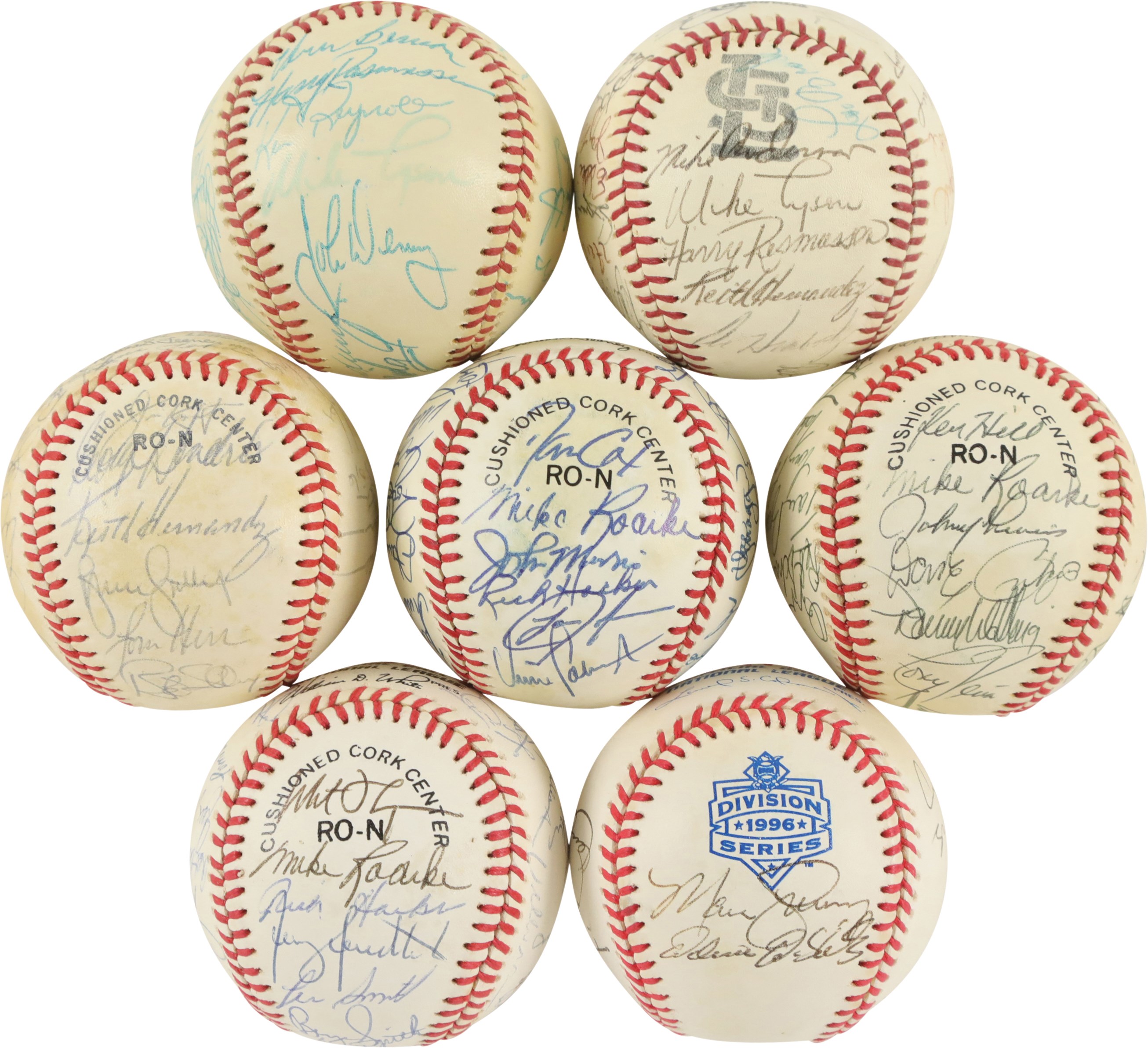 Lot # 382: 1975-96 St. Louis Cardinals Team Signed Baseball Collection (7)