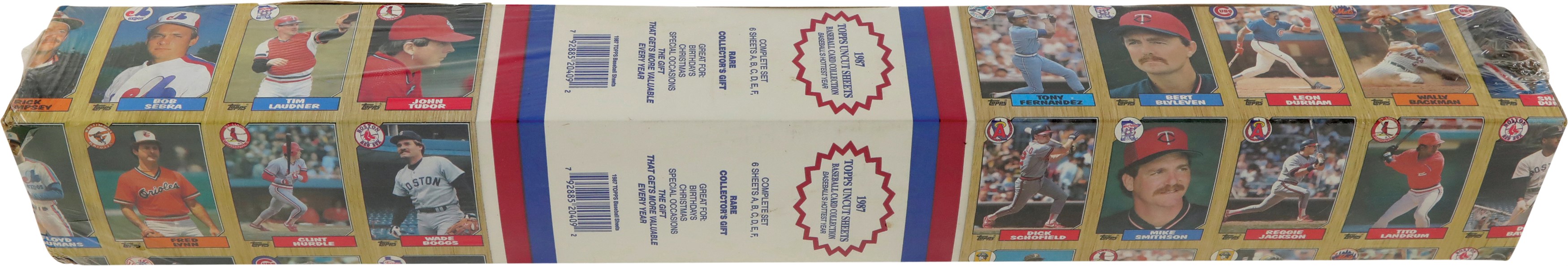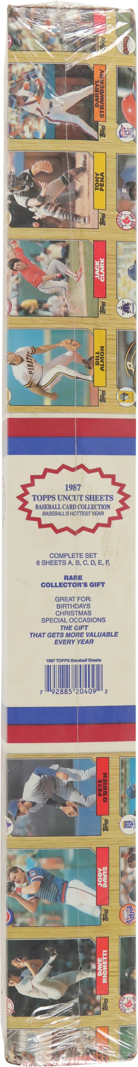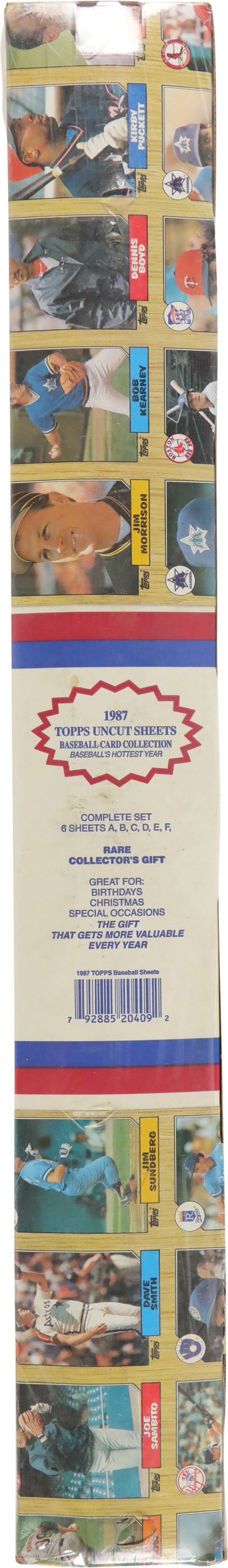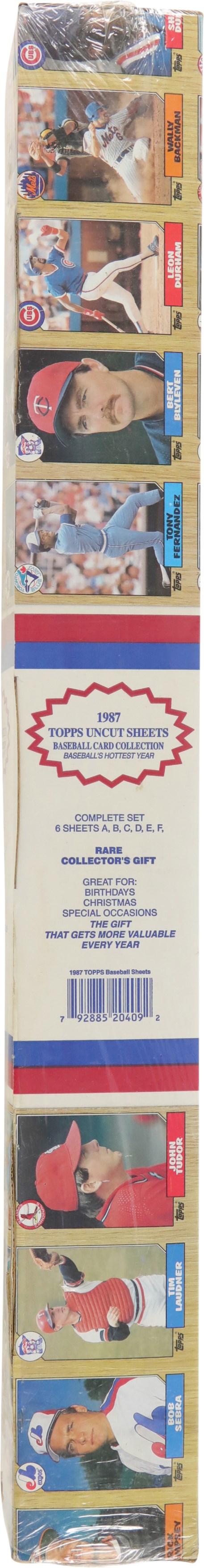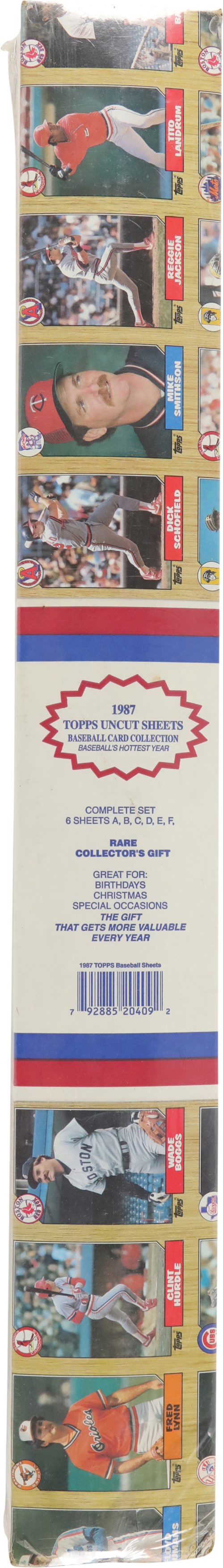 1987 Topps Baseball complete set of (6) uncut sheets in original sealed box.  The set includes sheets A; B; C; D; E; and F which is noted on the outside of the Topps box.  The box is sealed from the factory.  The box itself is lithographed with 1987 Topps cards.  Cards/Sheets are assumed to be in NM or better condition.