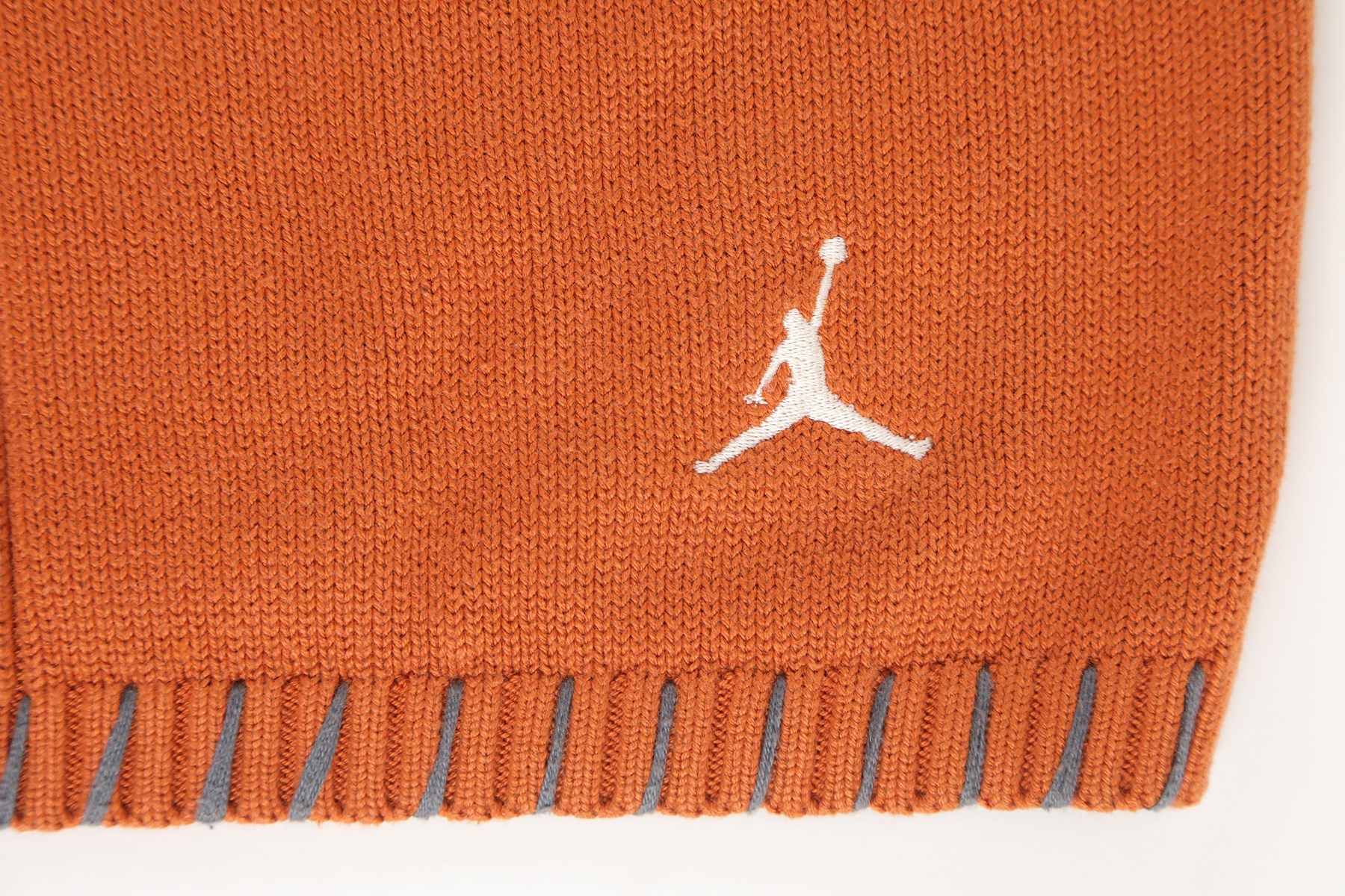 inside bottom of orange vest has wash tag, which shows wear, and bottom states "Michael Jordan"
