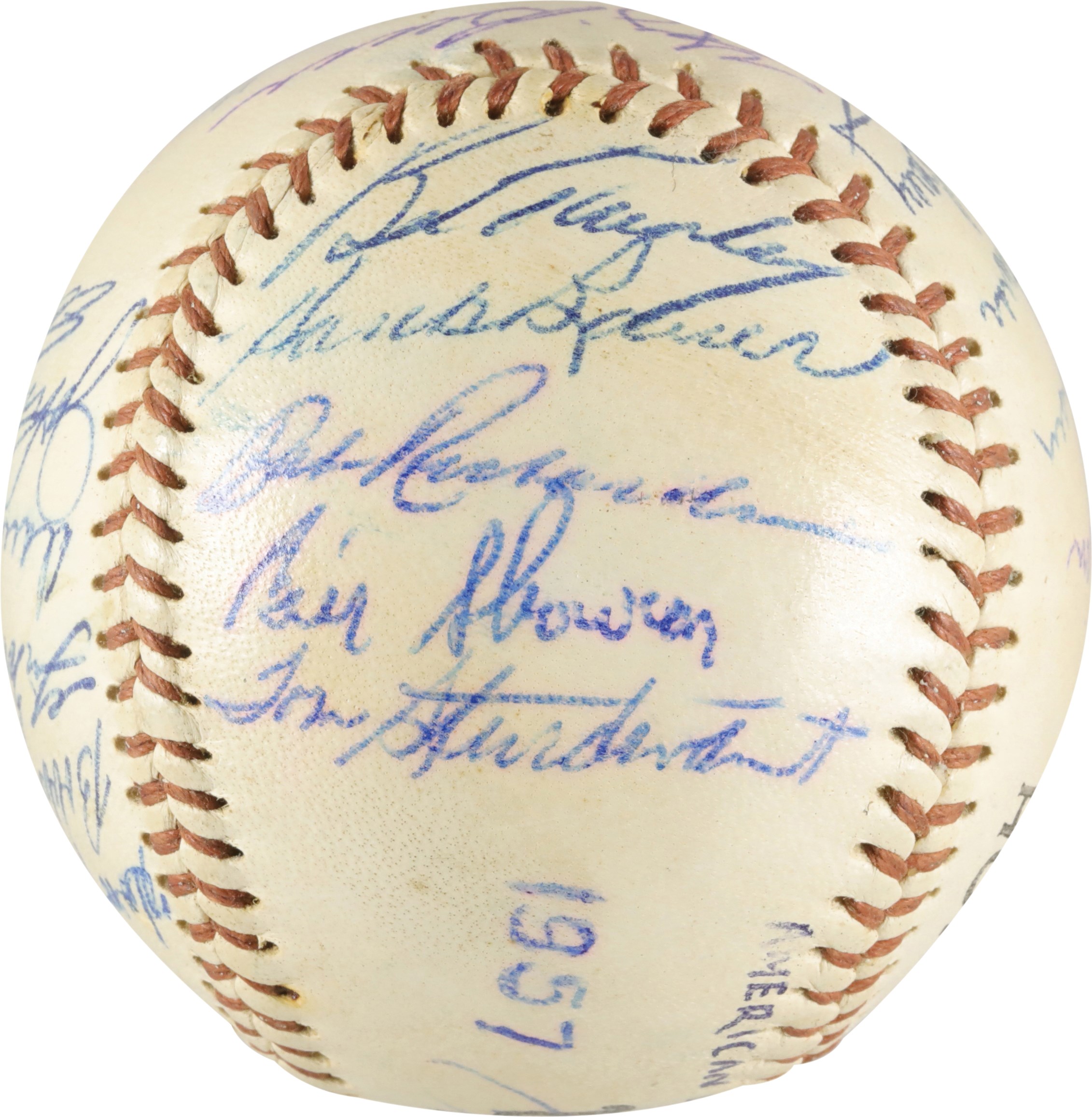 Lot # 362: 1957 New York Yankees Team Signed Baseball