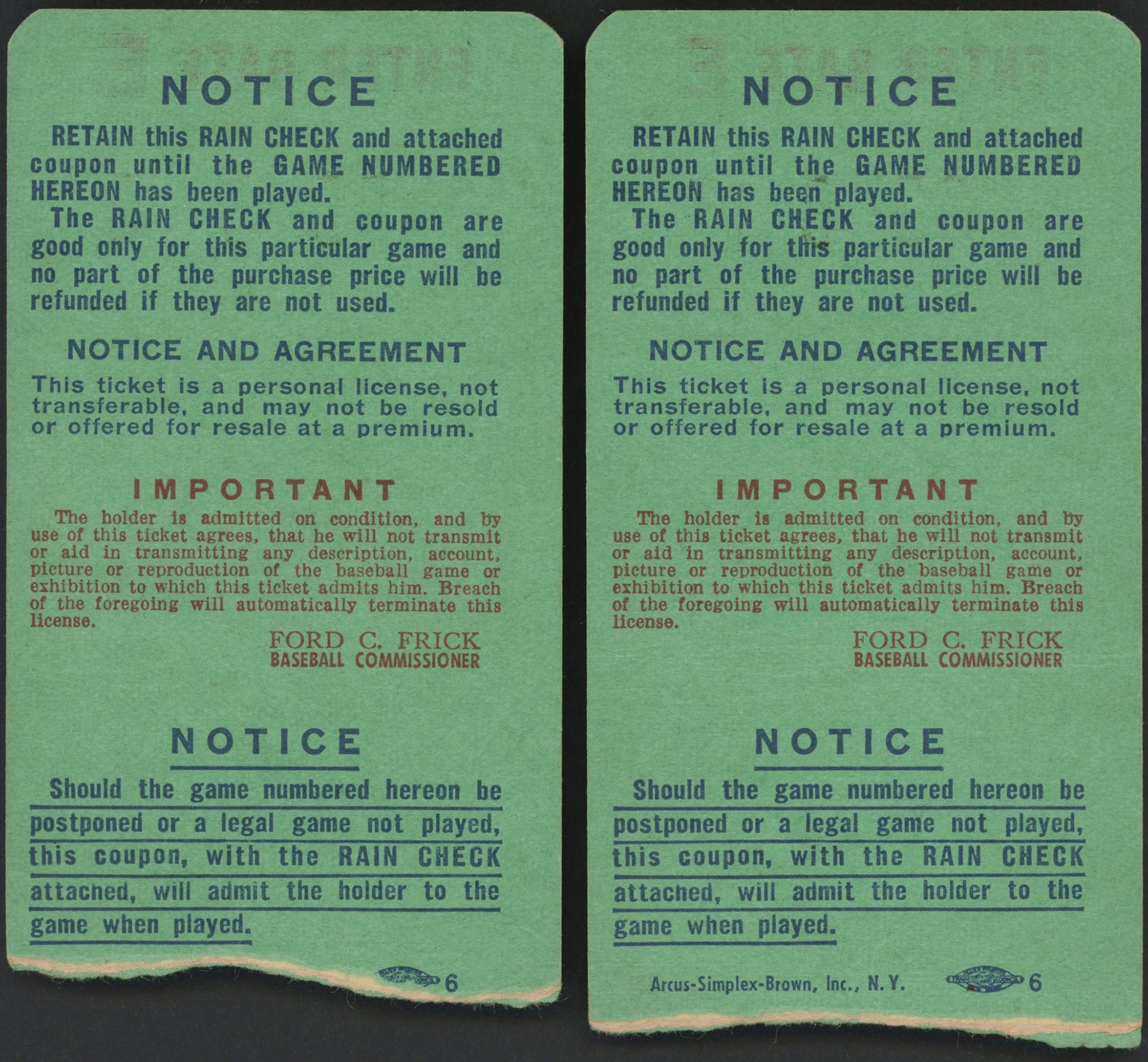 Lot # 659: 1952 World Series New York Yankees vs Brooklyn Dodgers Game 1 Ticket Stub Pair - Jackie Robinson's 1st World Series Home Run