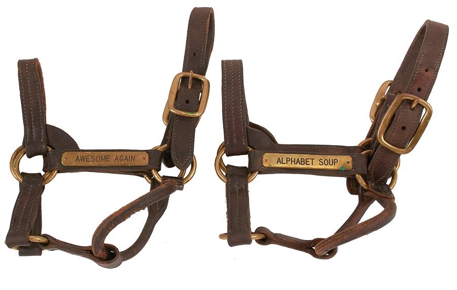 Offered here are stallion halters from two winners of North America's richest horse race, the Breeders' Cup Classic. Included are 1996 Champion Alphabet Soup (beating the great, Cigar) and 1998 winner Awesome Again (defeating one of the best Classic fields ever assembled). Both halters come with COAs.