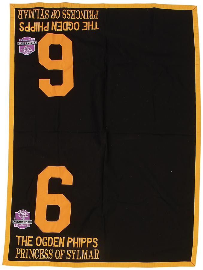 In 2013, Princess of Sylmar firmly established herself as arguably the best filly in the land after claiming six stakes races, including the Kentucky Oaks, Coaching Club American Oaks, Alabama Stakes and the Beldame Stakes. For her career, Princess of Sylmar won nine of 14 starts for $1,852,220. This cloth was worn by the filly in her runner-up finish in the 2014 Ogden Phipps Handicap.