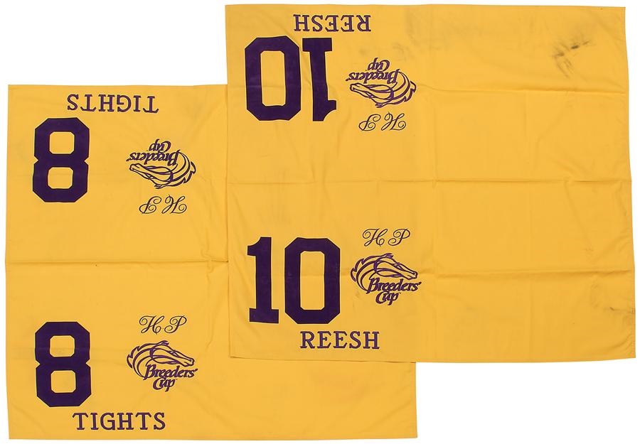 Offered here is a pair of cloths from the very first ever Breeders' Cup from Hollywood Park in 1984. Includes Tights BC Mile and Reesh BC Sprint with unique designs.