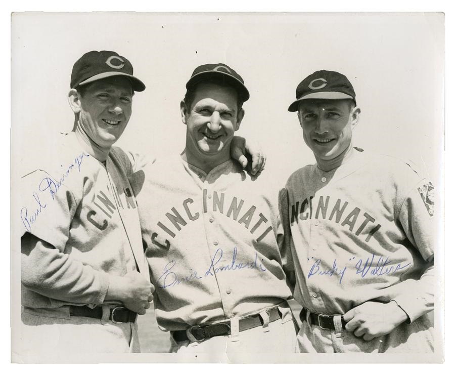 Lot # 511: Stars of 1940 World Series - Derringer, Lombardi & Walters Signed Photo