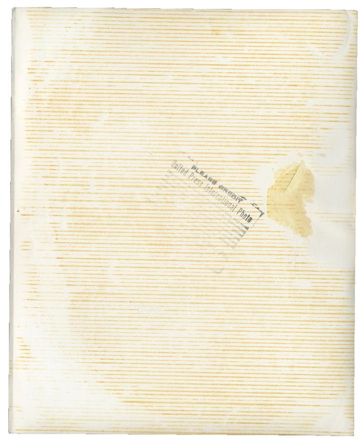 A great shot depicting three miraculous Cincinnati Reds players from 1940 World Series verses Detroit Tigers; Ernie Lombard, Bucky Walters and Paul Derringer. Walters becomes 4th pitcher ever to hit a home run. Signatures of three Reds on this vintage photo are in blue ballpoint and rate an 8/10. United Press International 8x10" photo, condition of photo is EX-MT.