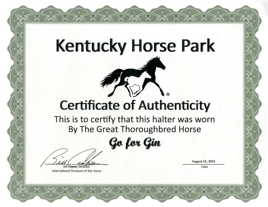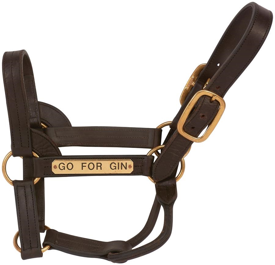 A 9-1 overlay in the 1994 Kentucky Derby, Go for Gin splashed his way to a two length victory over a star-studded field. Under the tutelage of New Yorker Nick Zito, Go for Gin won multiple graded stakes races and earned $1,380,366. Now pensioned from stallion duty after producing progeny earnings of over $22,000,000, he resides in the Hall of Champions at the Kentucky Horse Park and this retirement halter comes with their COA.