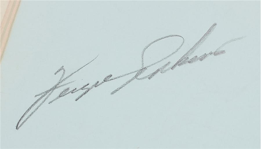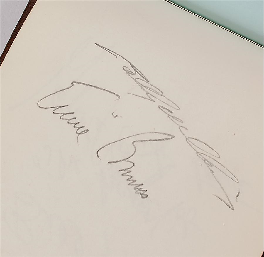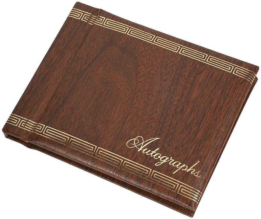 This is an autograph album of young Robert Tepperman, who wrote inside, "1968 July 19 we went to Calif for the Cubs fan tour. We also went back on the same plane as the Cubs team." While there, he got these 24 mint pencil autographs: Durocher, Banks, Spangler, Kessinger, Stoneman, Billy Williams, Jenkins, Beckert, Regan (2), Murphy, Ross, Reuschel, Fast (2), Arcia, Smith, Jenkins, Phillips, Laneak, Hands, Nye, Walker and Bill Hall ("Head of the Cubs Tour").