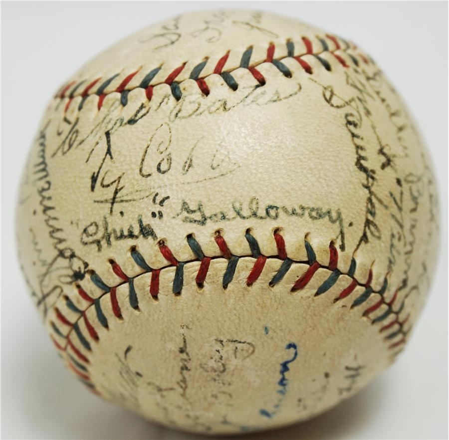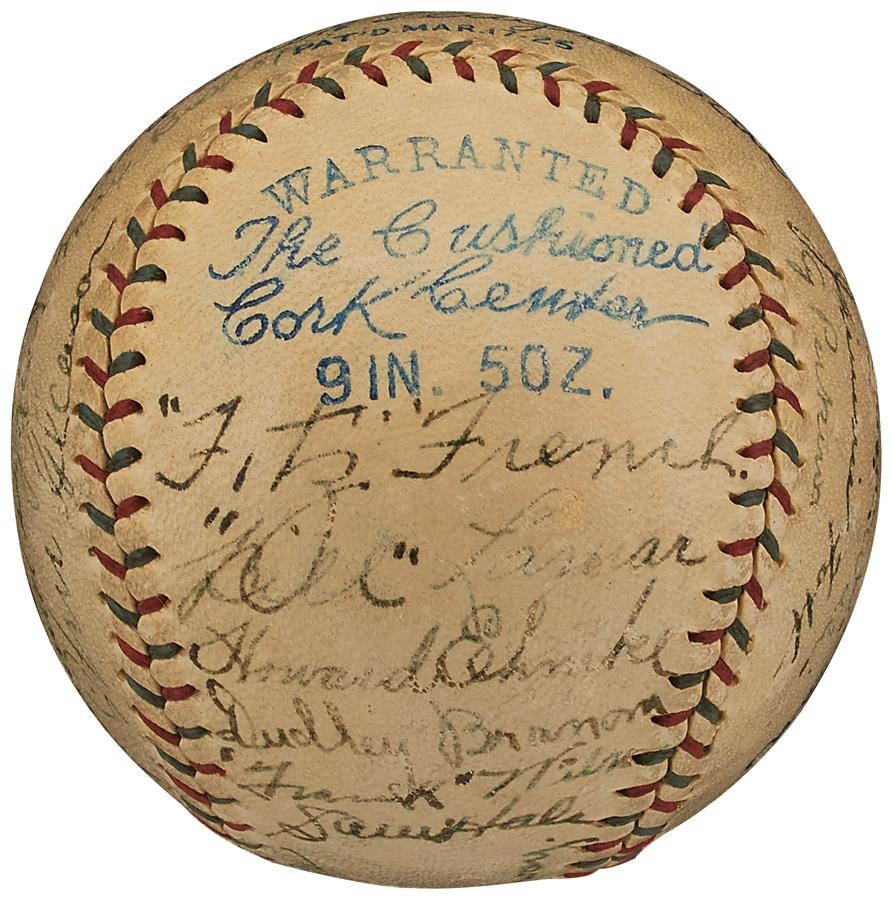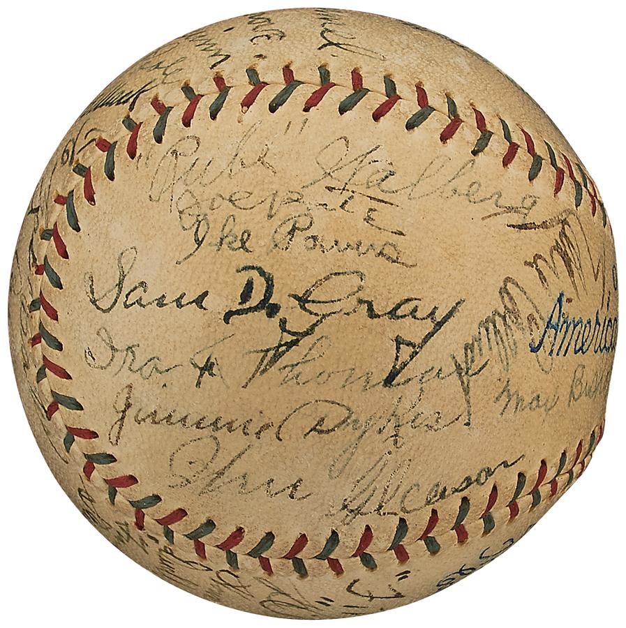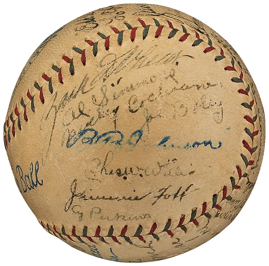 It's very clean and grades EX-MT (note that E.S. Barnard took over the American League presidency for Ban Johnson in 1928 and this baseball was most likely a leftover from the 1927 season). The litany of stars includes Ty Cobb on the sweet spot, Zack Wheat, Al Simmons, Mickey Cochrane, Jimmie Foxx, Lefty Grove, Connie Mack, and Eddie Collins, comprising the list of no less than eight Hall of Famers. Also featured are the likes of Kid Gleason, Rube Walberg, Jimmy Dykes, Cy Perkins, Eddie Rommel, Howard Ehmke, and more. Despite finishing with a dominant 98-55 record, the A's fell just short of the pennant-winning Yankees, who swept St. Louis in the World Series.