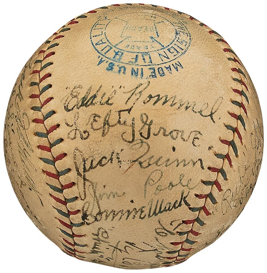 Though the 1928 Philadelphia Athletics did not win the Championship, theirs is still considered one of the all-time great teams as, young and old, this was a squad for the ages. This Official American League (Johnson) baseball contains 30 signatures in black fountain pen ranging from 5-8/10, with most rating around 6.5. More impressively, the ball itself is in very nice condition and has to be one of the best, if not the best out there.