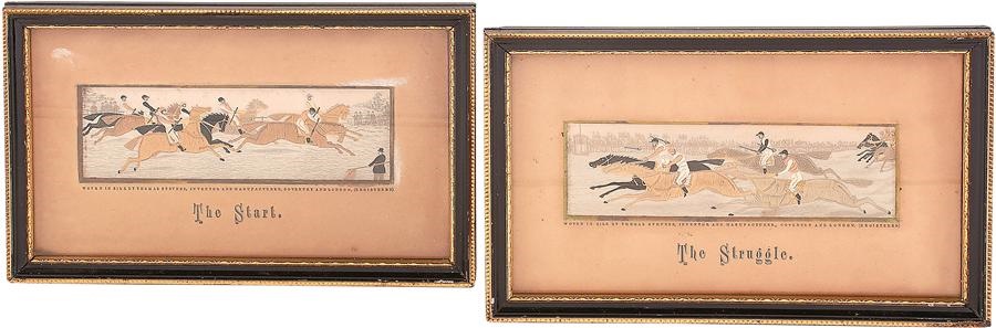 Wonderful silk bookmarks by the great Thomas Stevens, these date from the latter part of the 19th century. They are in their original frames and have a slight bit of fading but are otherwise in EX condition.