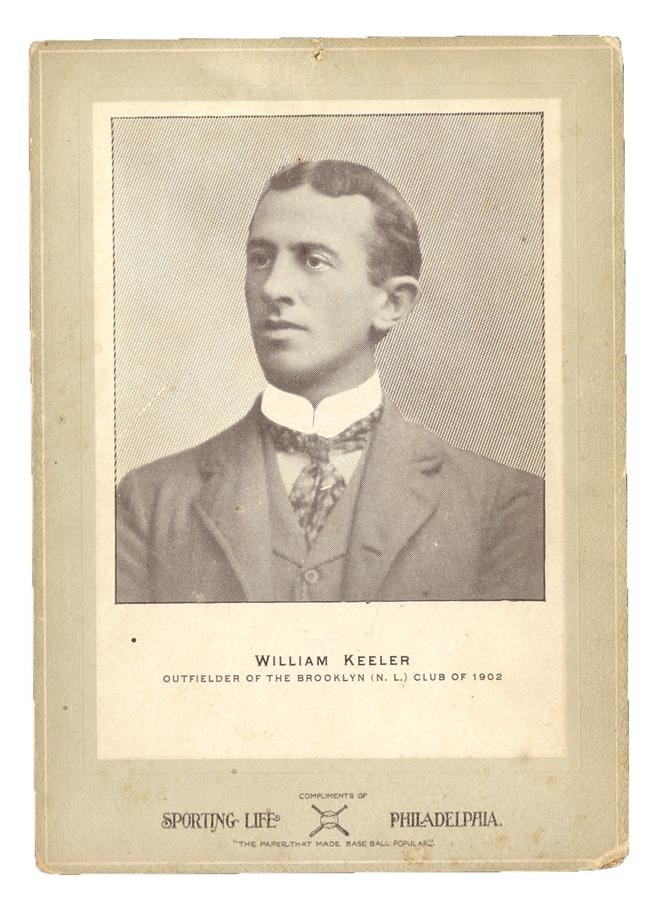 Hall of Famer "Wee Willie" Keeler poses in his street attire while representing the 1902 Brooklyn baseball team, later known as the Dodgers, in this vintage cabinet photo shot for the publication "Sporting Life." There is a pinhole at the top but is otherwise VG.