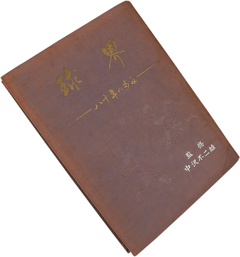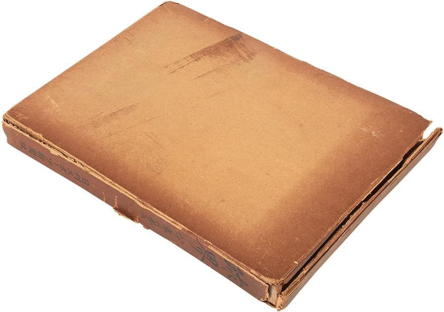 This major tome was written in 2002 by Fujio Nakazawa of the Japan Hall of Fame, and is one of his great contributions to Japanese baseball literature; in fact, this beautiful volume may be his best work. The first 65 pages (Japanese text) contain a summary of the first 80 years of Japanese baseball. They are followed by 78 pages of photos, including three foldout pages. In total, there are more than 300 vintage photos, most of which have never been seen elsewhere. Many of the photos contain facsimile autographs, and the subjects include Ty Cobb in Japan, Babe Ruth during the 1934 U.S. All Star Tour of Japan, Victor Starffin. Eiji Sawamura, and many team and game action shots. These photos are of high quality and must be seen to be believed. Interestingly, the photo pages are not back to back. Instead, each page is printed on its own blank-backed sheet of paper. Therefore, the image could be removed without damaging any others and used for display. Hence, many of these books were cut up and it is quite tough to find it unscathed such as this one. In EX condition.