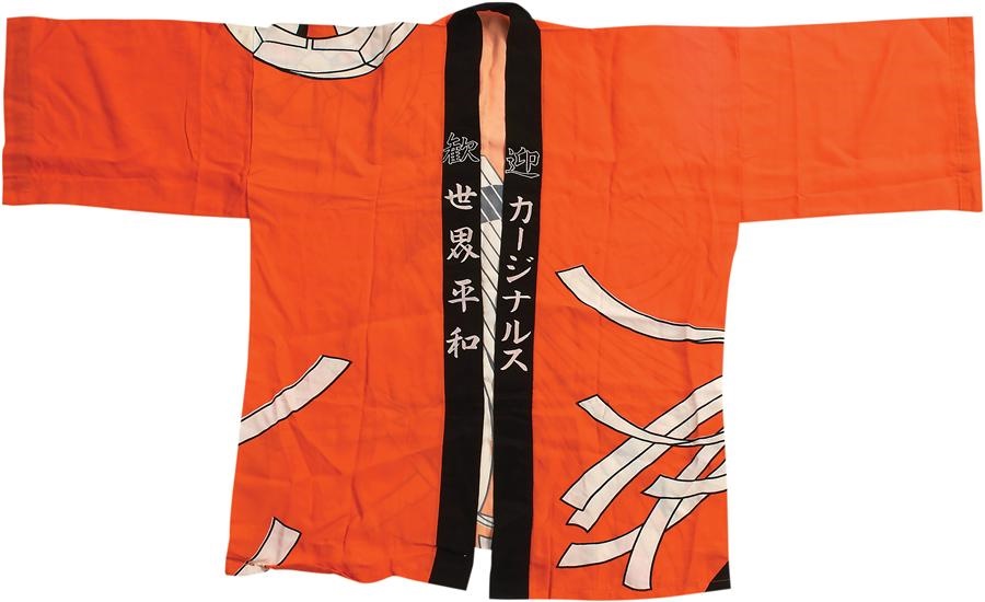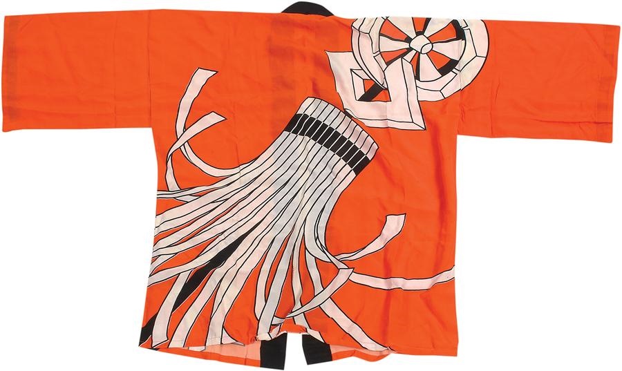 Traditional Japanese straight-sleeved coat imprinted with a distinctive crest or "mon." Presented to Detroit Tigers players and VIPs on their 1962 Tour of Japan. First we have seen it is EX-MT.