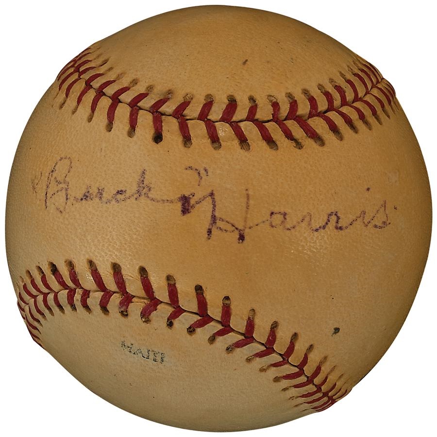 One-time second baseman and Hall of Fame manager Bucky Harris won two World Series with the Senators and Yankees. His autograph graces this single-signed baseball on the sweet spot. The ball is clean and features a "Haiti" stamp. Comes with a PSA/DNA LOA.
