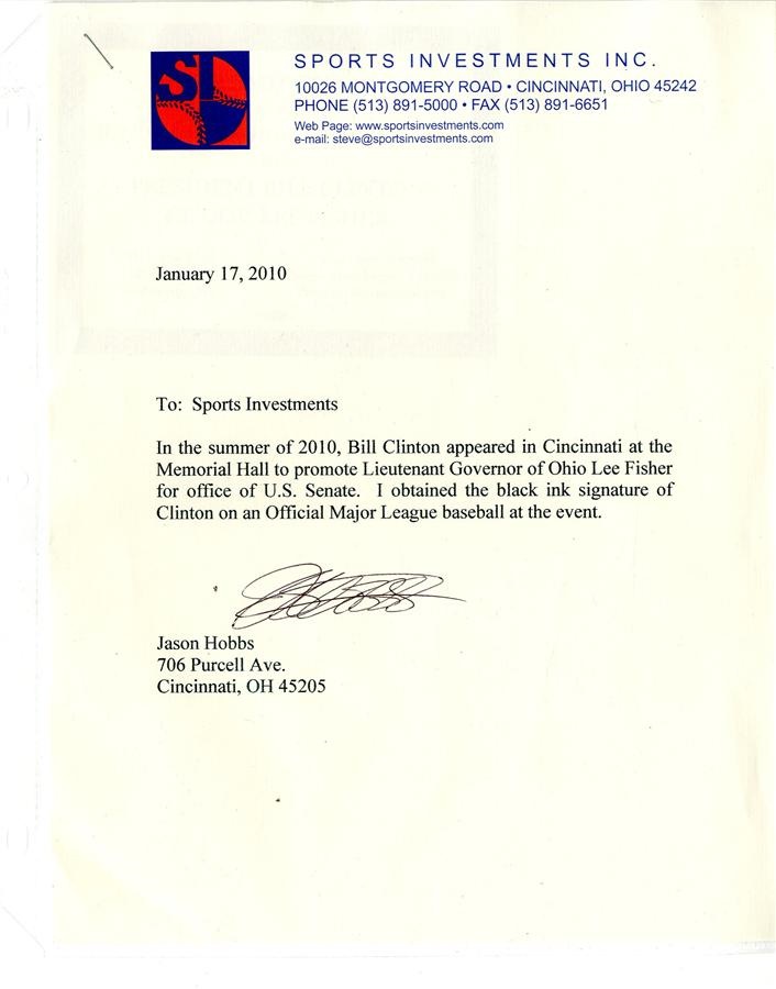 You can call it a "Bubba Ball." The 42nd President of the United States - Bill Clinton - signed this official Major League (Selig) baseball, which is classified as NRMT to MT. The former governor of Arkansas signed in black ink on the sweet spot, and it grades 8/10.