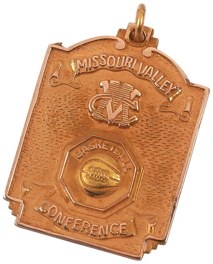 The Cincinnati Bearcats knocked off Buckeye State rival Ohio State for the 1961 NCAA basketball title, and this gold-filled medal was awarded to player Dale Heidotting for winning the 1961 Missouri Valley Conference Championship en route to the ultimate prize. The medal is stamped "L&C GF" on the back,comes with an LOA from Heidotting and is in NRMT condition.
