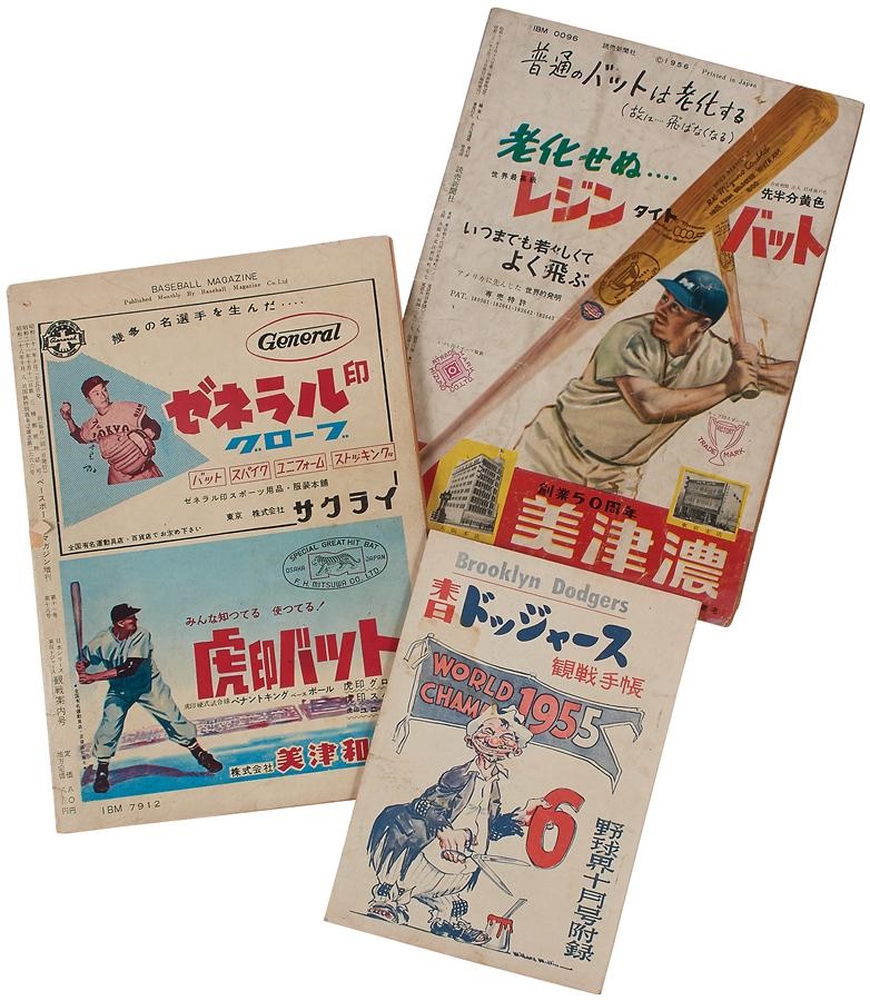 "father of Japanese professional baseball." From that trip come these publications, all of which have various photos and articles/biographies of the Dodgers players. They are in VG condition with some small tears around the edges.