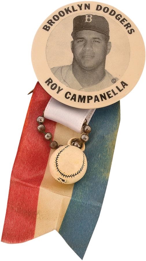 One of the tougher PM10 stadium pins, this has red, white and blue ribbon with mini baseball on chain. Condition is exceptional NM. One of two we have seen.