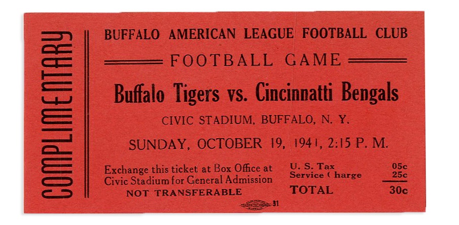 Lot # 1124: 1941 Cincinnati Bengals v Buffalo Tigers Unused American Football League Ticket