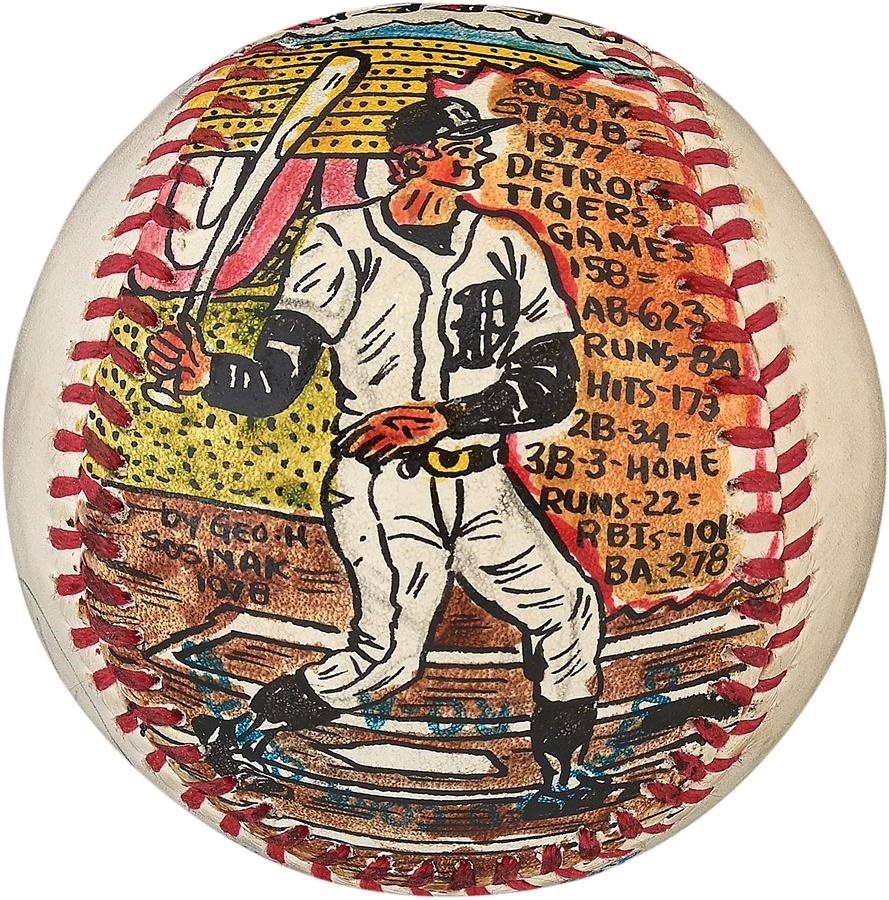Lot # 933: George Sosnak 1978 Detoit Tigers Rusty Staub Signed Painted Baseball