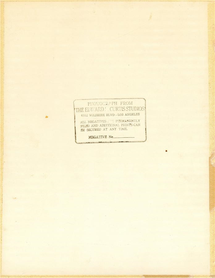 This hand-signed cartouche of Paul Helms is by Edward S. Curtis, an original photograph by one of our most famous photographers most known for his magnificent portraits of the American West and of Native Americans. Stamped on verso by The Edward Curtis Studios with a Wilshire Blvd. Los Angeles address, the photograph is of the namesake of Helms Hall Sports Museum. Bromide print on double weight stock measures 11x14" and has some foxing discoloration around the edges.