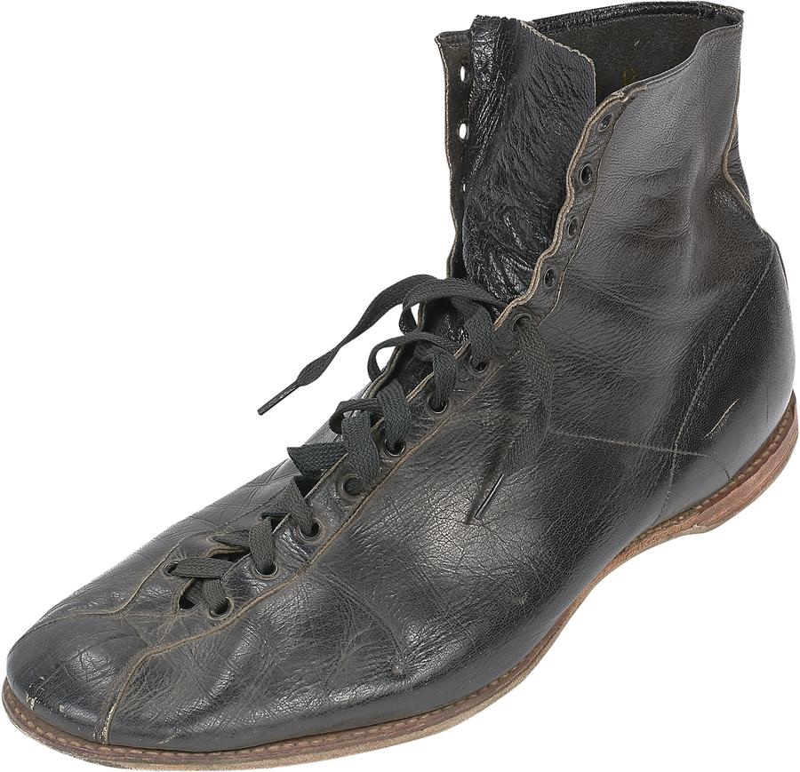 Henry Armstrong captured the Featherweight, Lightweight, and Welterweight titles in 1938, and remains the only one to hold three belts simultaneously. This size 11 boxing shoe was worn by Henry Armstrong around the period of the 1930s. Made of nice quality leather and quite large, it's from the collection of the esteemed Helms Hall Sports Museum and will come with letter of provenance/authenticity from Lelands.com. Condition is EX+. NOTE: This piece could very well be from a major event. Many of the Helms pieces were not fully identified with their source information having been lost through the years, however, through photo analysis have been able to match items previously unidentified by Helms to very important events. With a little research, you may have an even greater treasure here.
