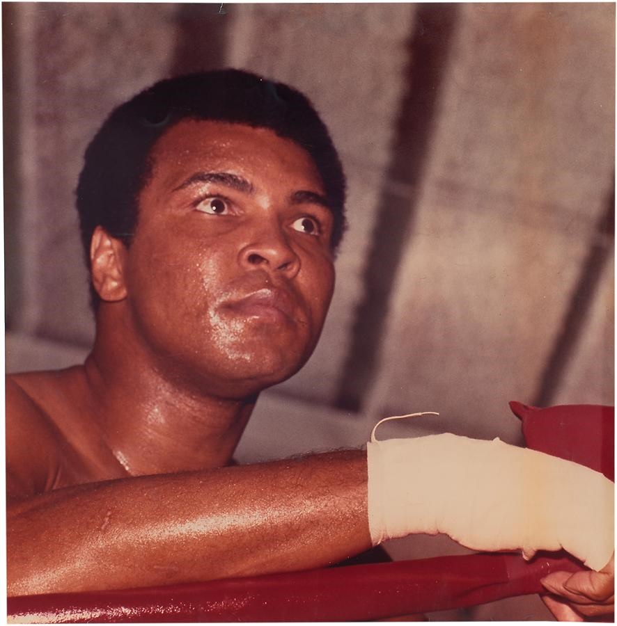 This Type I oversized full color photo depicts Muhammad Ali training during the 1970s, obviously by an important photographer. Measures an impressive 16.5x16.5" and condition is EX. From the collection of the esteemed Helms Hall Sports Museum and will come with letter of provenance/authenticity from Lelands.com.