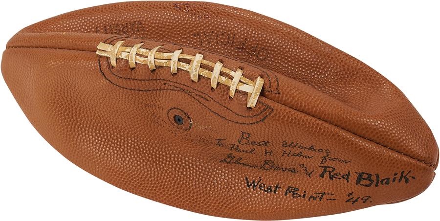 Signed by famous All American West Point halfback Glen Davis, winner of the Heisman, this football was personalized to to Paul Helm with an inscription "Best Wishes To Paul H. Helm from Glen Davis with Red Blaik West Point - '49". Signature is on a Wilson D-32. From the collection of the esteemed Helms Hall Sports Museum and will come with letter of provenance/authenticity from Lelands.com.