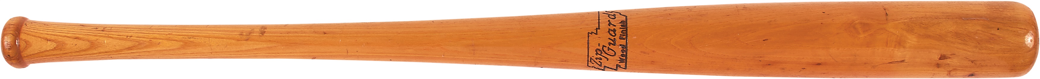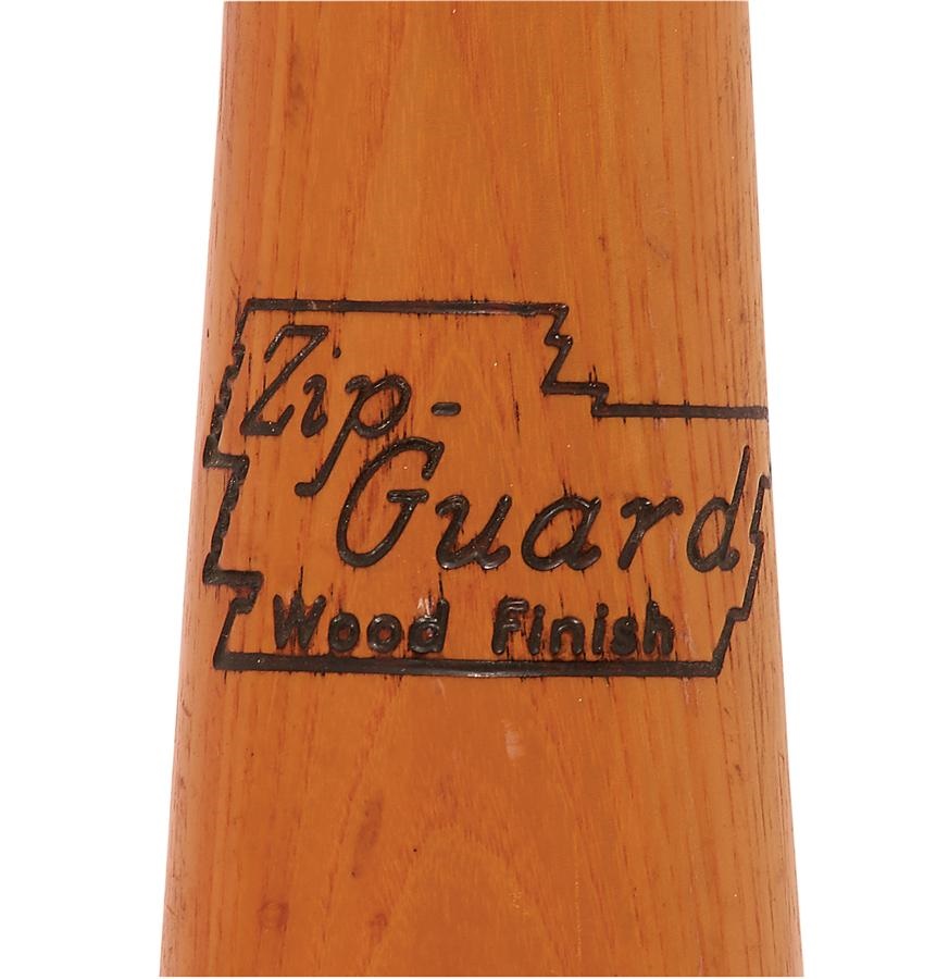 This heavy bat is comprised of maple wood and retains its original heavy varnish finish. Measuring 33 inches, it is in EX condition and features a "Zip Guard Wood Finish" center brand.